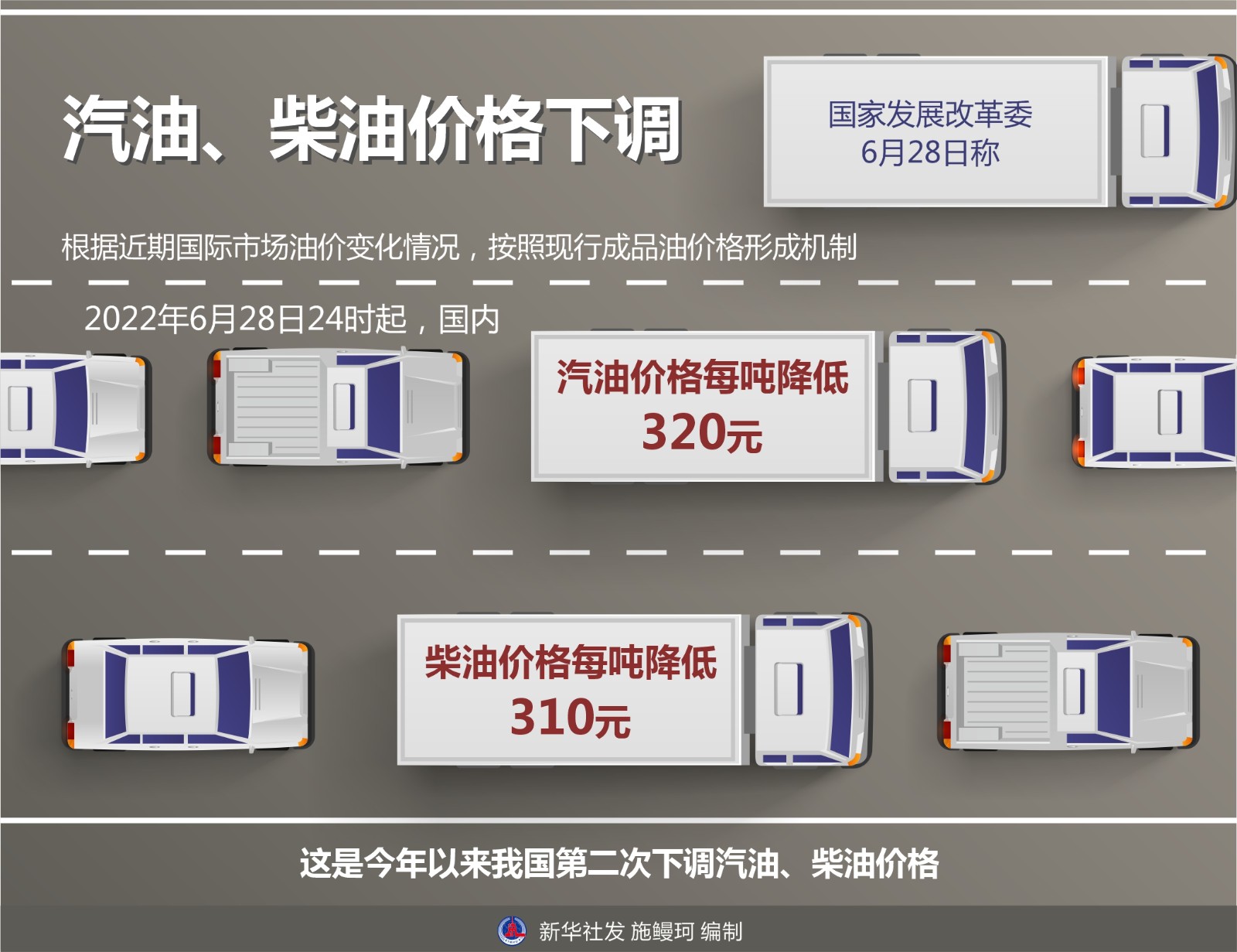 國(guó)家發(fā)展改革委6月28日稱,根據(jù)近期國(guó)際市場(chǎng)油價(jià)變化情況,按照現(xiàn)行成品油價(jià)格形成機(jī)制,自2022年6月28日24時(shí)起,國(guó)內(nèi)汽油、柴油價(jià)格每噸分別降低320元和310元。