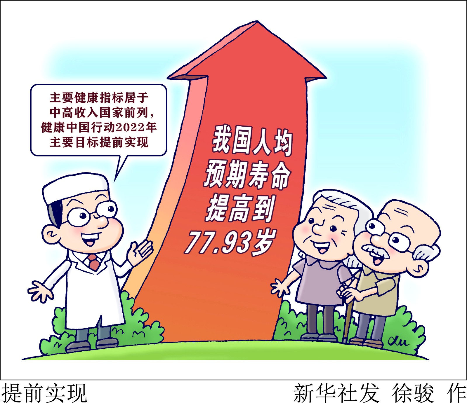 目前,我國人均預(yù)期壽命提高到77.93歲,主要健康指標(biāo)居于中高收入國家前列,健康中國行動2022年主要目標(biāo)提前實現(xiàn),重大慢性病過早死亡率低于全球平均水平,健康中國行動實施取得明顯階段性成效。