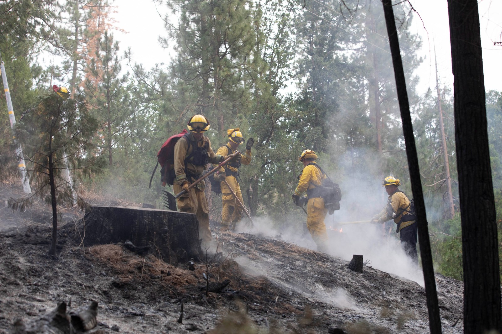 7月25日,消防員在美國加利福尼亞州馬里波薩縣參與滅火。