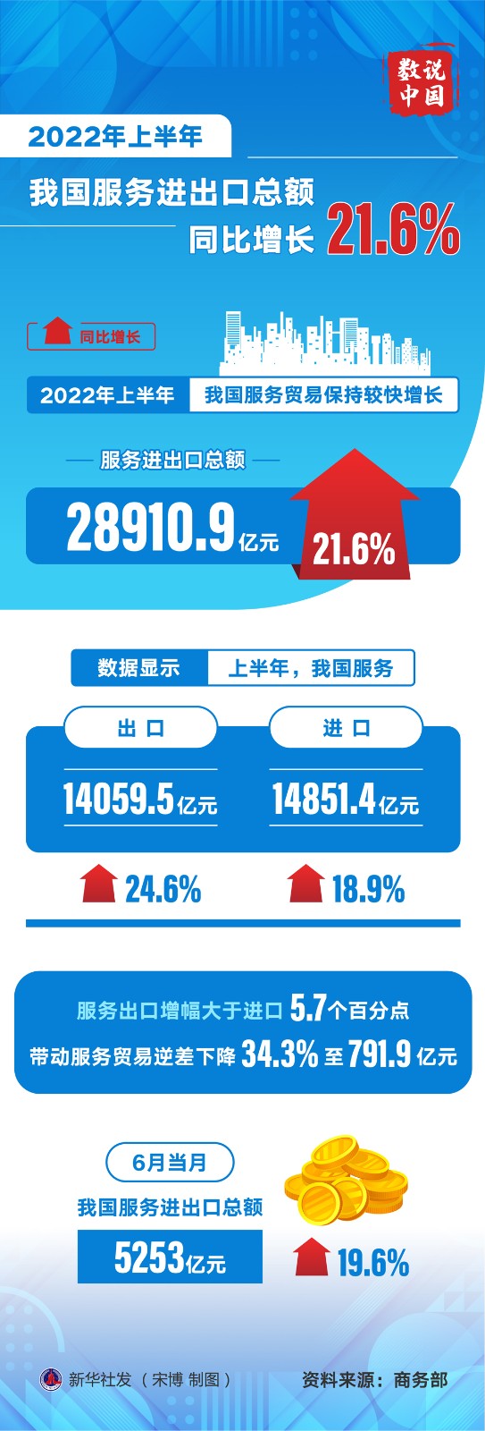(圖表)2022年上半年我國服務(wù)進(jìn)出口總額同比增長21.6%