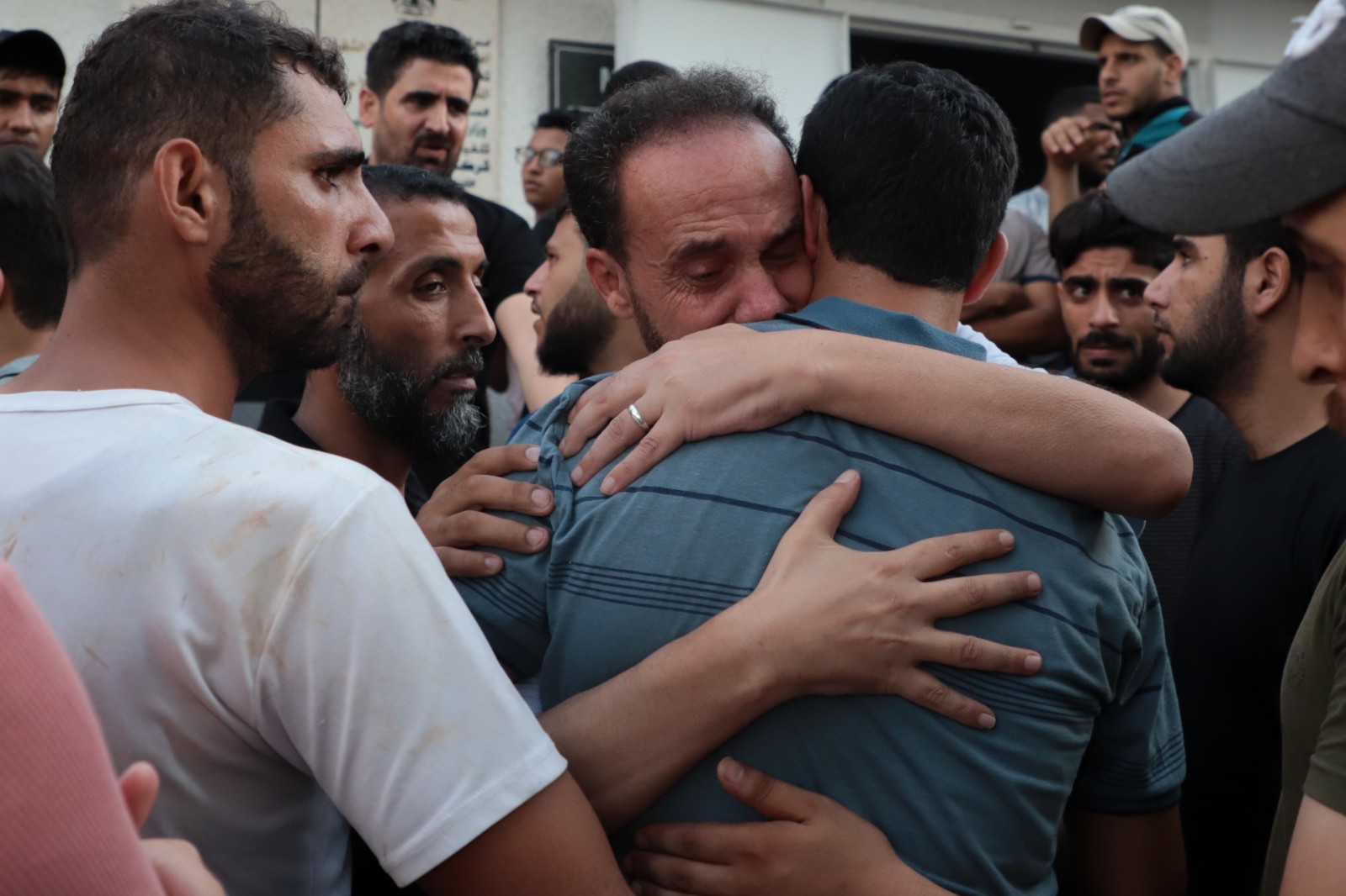 8月5日,人們在加沙城一所醫(yī)院哀悼在空襲中遇難的親人。