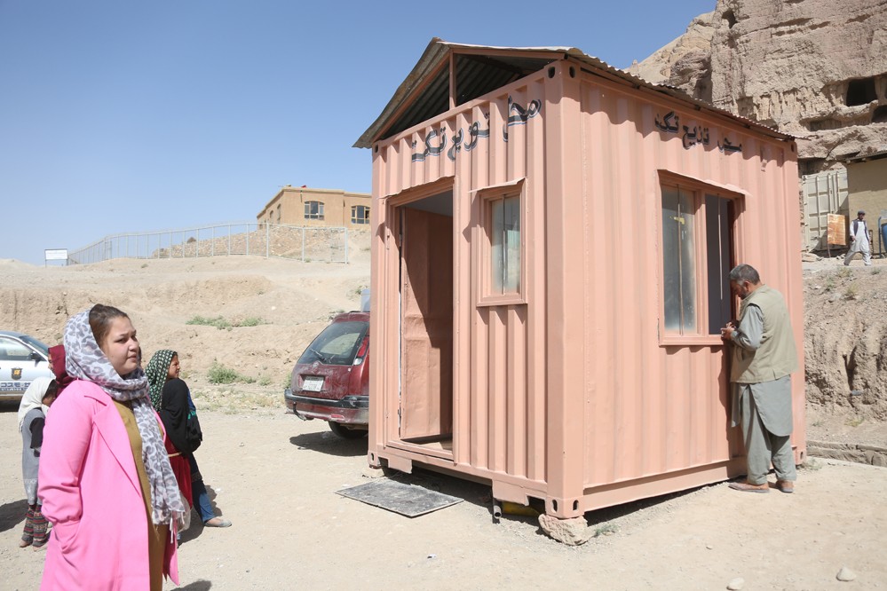 這是7月13日在阿富汗巴米揚拍攝的文物保護工作站。