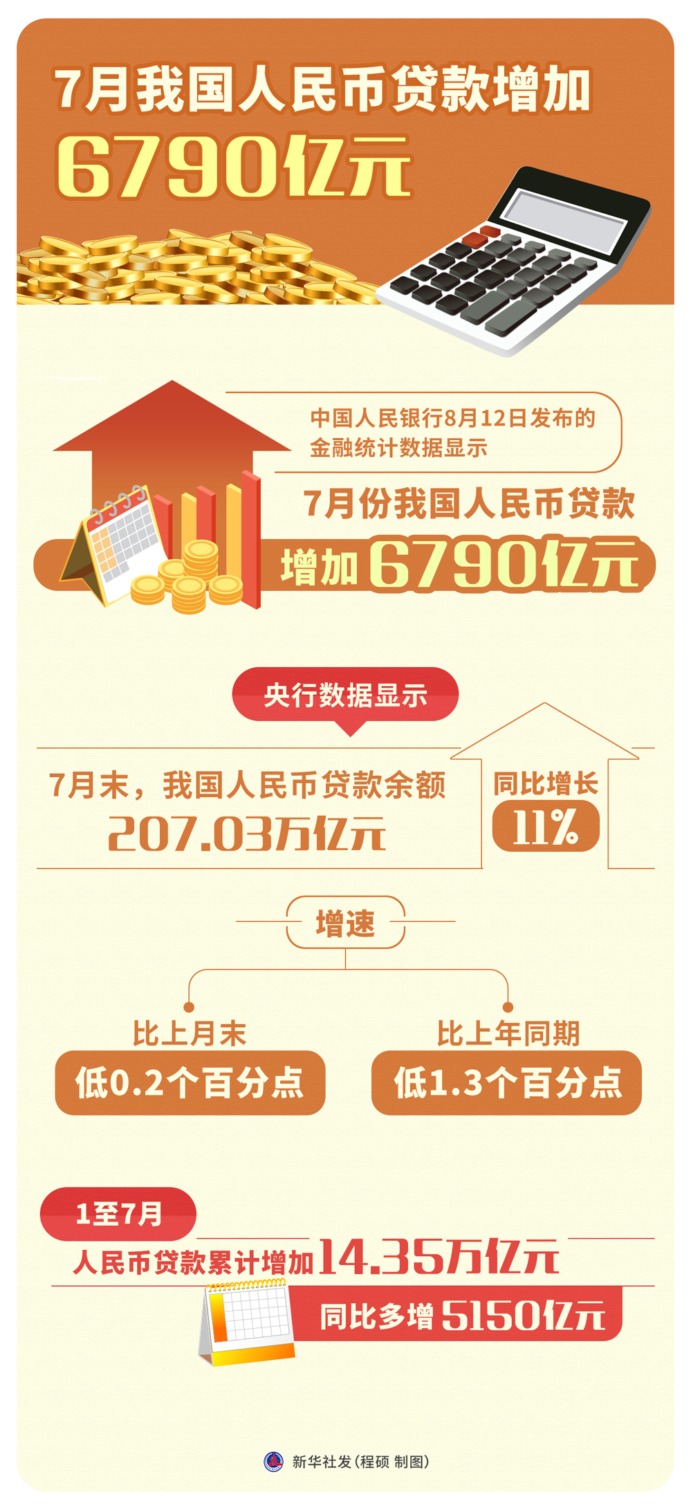 中國(guó)人民銀行8月12日發(fā)布的金融統(tǒng)計(jì)數(shù)據(jù)顯示,7月份我國(guó)人民幣貸款增加6790億元。