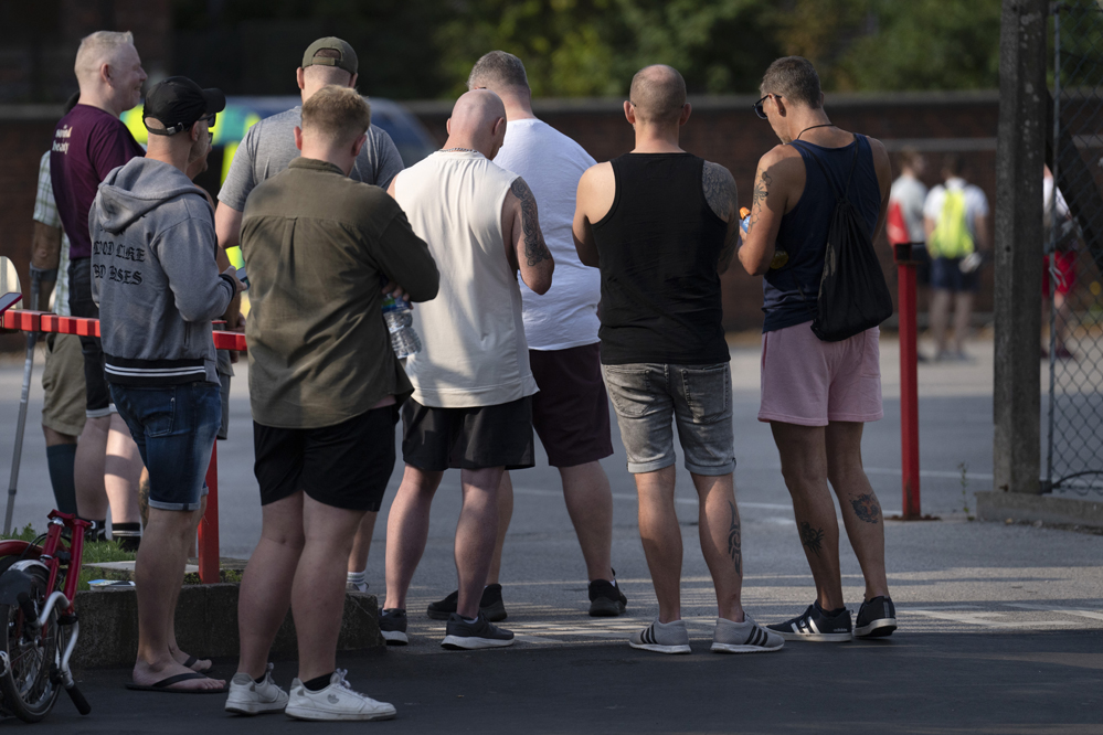 8月14日,人們在英國曼徹斯特一處猴痘疫苗接種點(diǎn)外排隊等待接種疫苗。