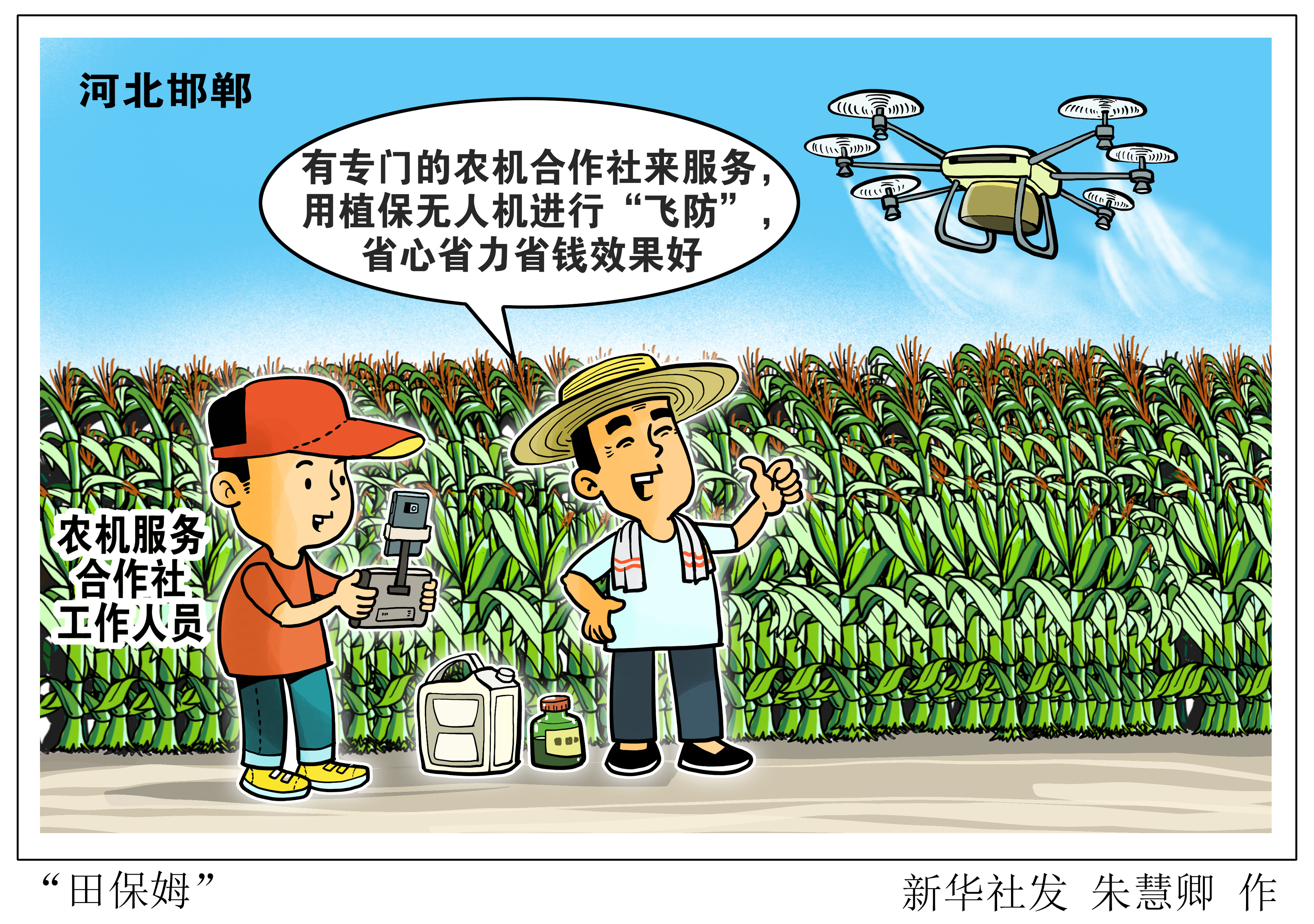 正值玉米銹病防治關(guān)鍵時(shí)期,河北省曲周縣河南疃鎮(zhèn)李于自口村村南,兩臺(tái)植保無(wú)人機(jī)不到一個(gè)小時(shí)就完成了一百多畝玉米的噴藥工作。