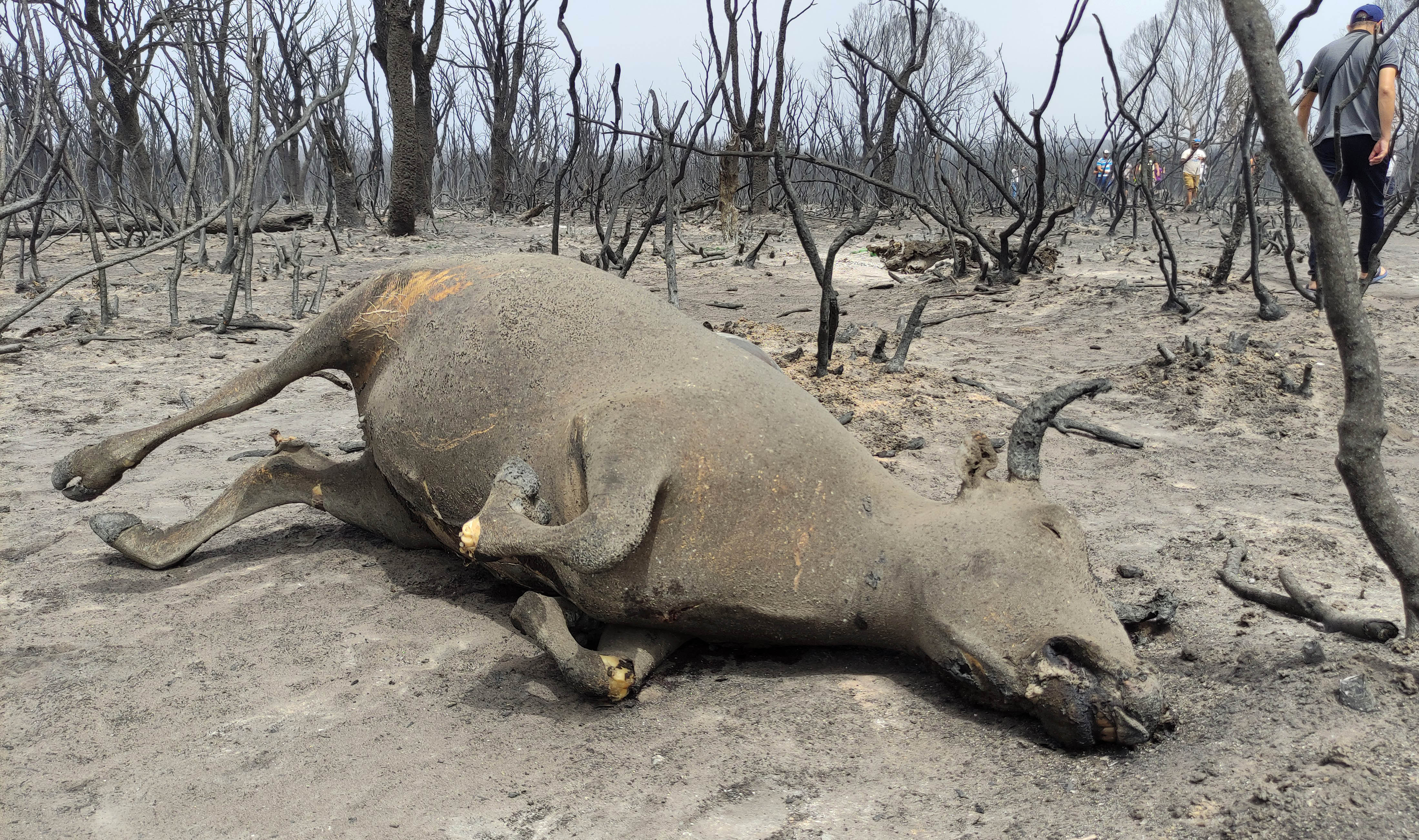 8月18日,在阿爾及利亞泰賴夫省,牲畜被森林火災燒死。