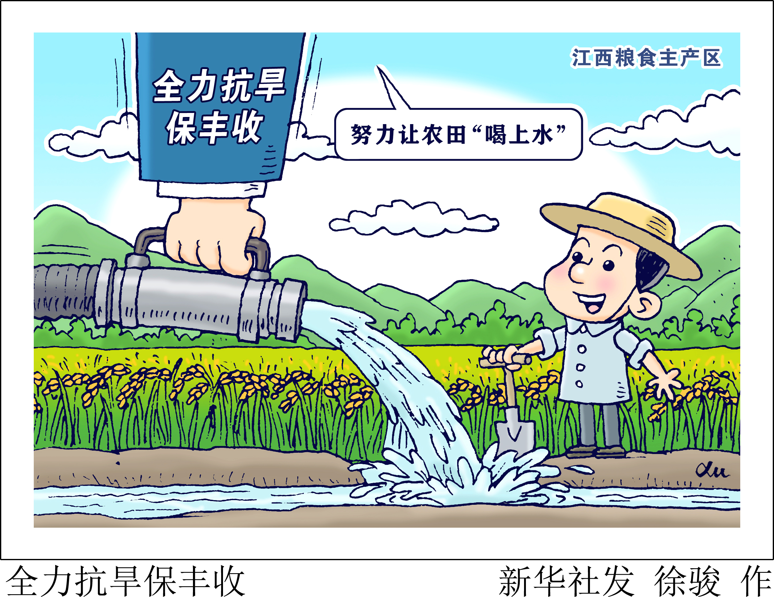 7月下旬以來,南方多地出現(xiàn)高溫少雨天氣,旱期疊加高溫?zé)岷?,?duì)秋糧生產(chǎn)造成威脅。江西是我國糧食主產(chǎn)區(qū)之一,當(dāng)?shù)馗刹咳罕娡ㄟ^打井、清溝、引水、提灌等方式,讓農(nóng)田“喝上水”,想方設(shè)法抗旱保秋糧豐收。