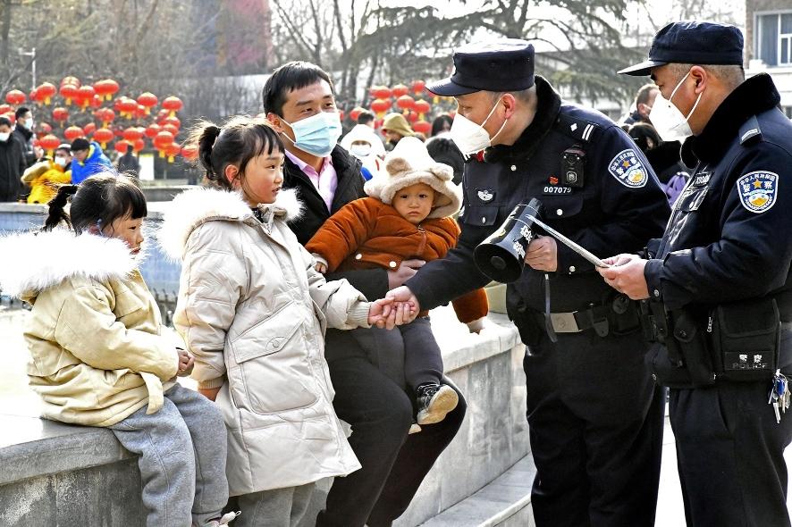 1月25日,遼寧省沈陽(yáng)市公安局治安管理局民警值守在旅游景點(diǎn),保障春節(jié)假期安全。