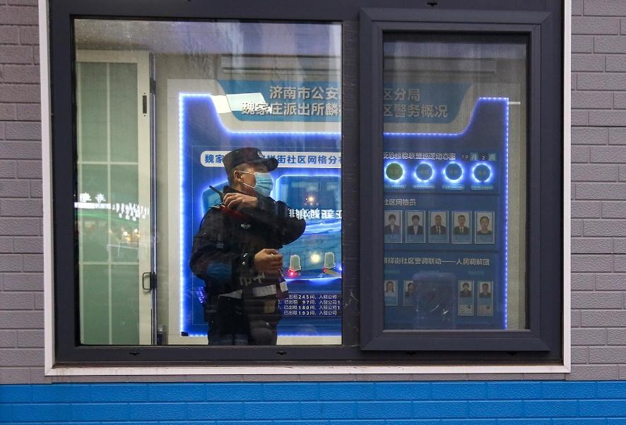 1月21日,山東省濟(jì)南市公安局市中區(qū)分局魏家莊派出所民警在社區(qū)警務(wù)室值班。