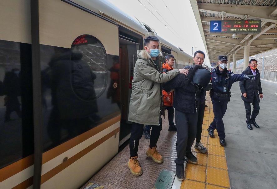 1月21日,西安鐵路公安處民警堅(jiān)守崗位,護(hù)送旅客平安出行,在忙碌的工作中迎接新春佳節(jié)的到來(lái)。