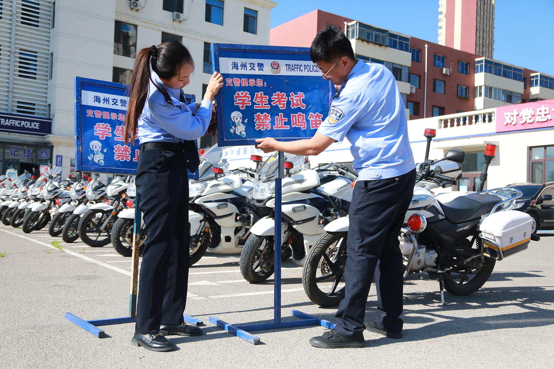 6月5日,遼寧省阜新市公安局交通警察支隊細(xì)河大隊民警提前深入轄區(qū)考點(diǎn),排查道路隱患,設(shè)置高考服務(wù)提示牌。