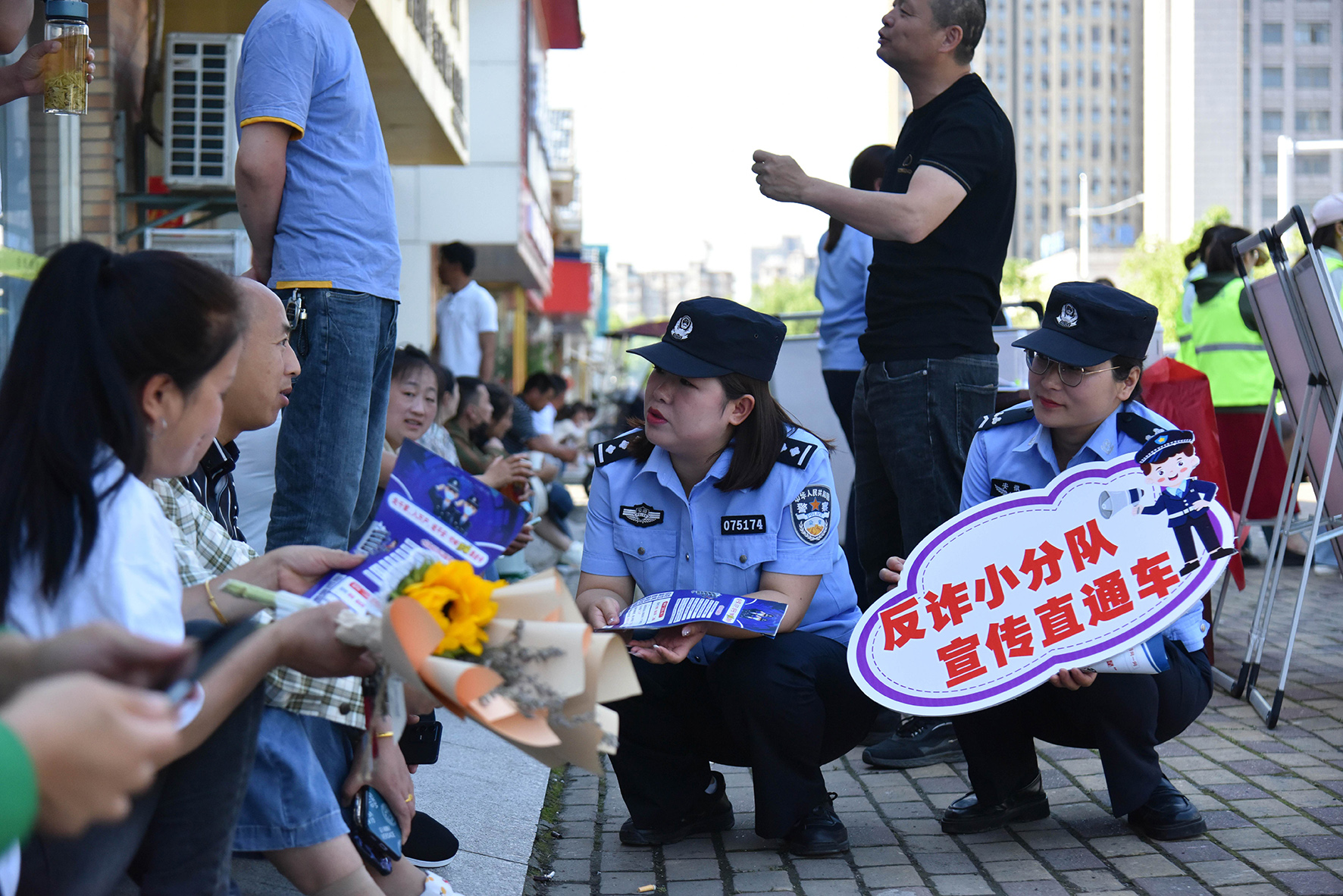 6月8日,安徽省當(dāng)涂縣公安局反詐小分隊(duì)民輔警在第二中學(xué)考點(diǎn)開(kāi)展反詐宣傳。