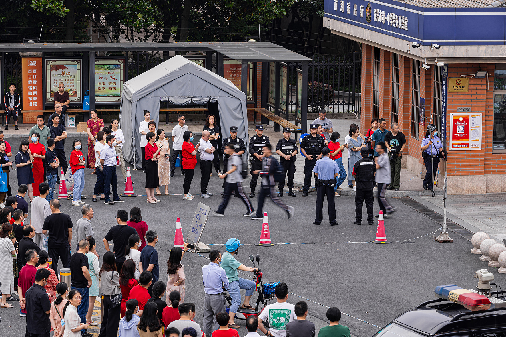 6月7日,浙江省嘉興市公安局南湖區(qū)分局民警在考點(diǎn)通過(guò)定點(diǎn)值守和武裝巡邏,確保廣大考生安全順利參加高考。