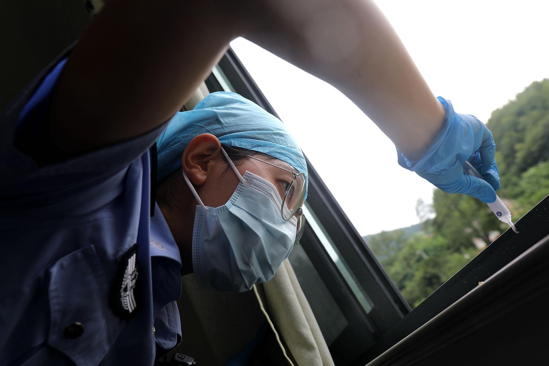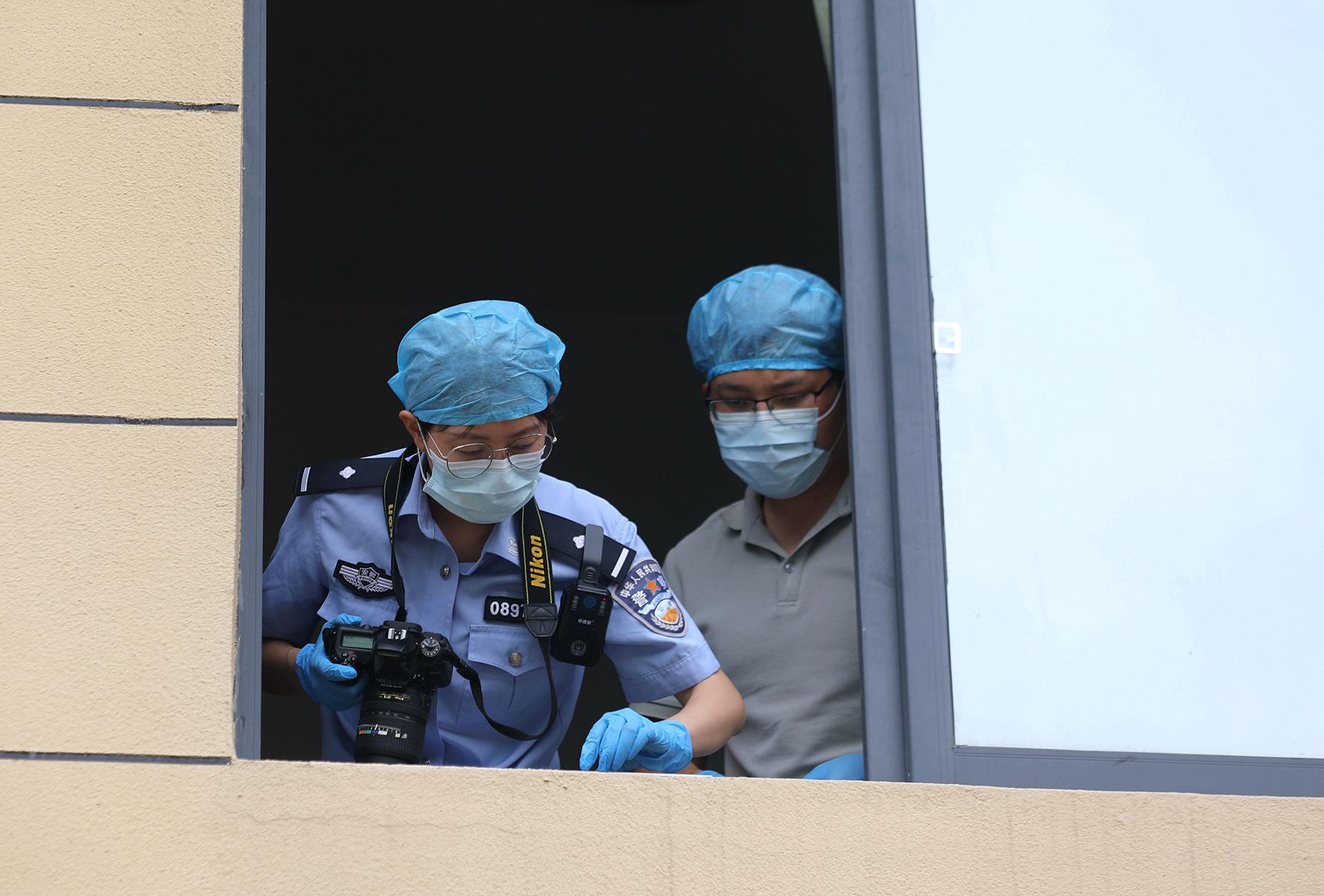 圖五、現(xiàn)場勘查結(jié)束,民警終于可以摘下頭套歇會(huì)兒。