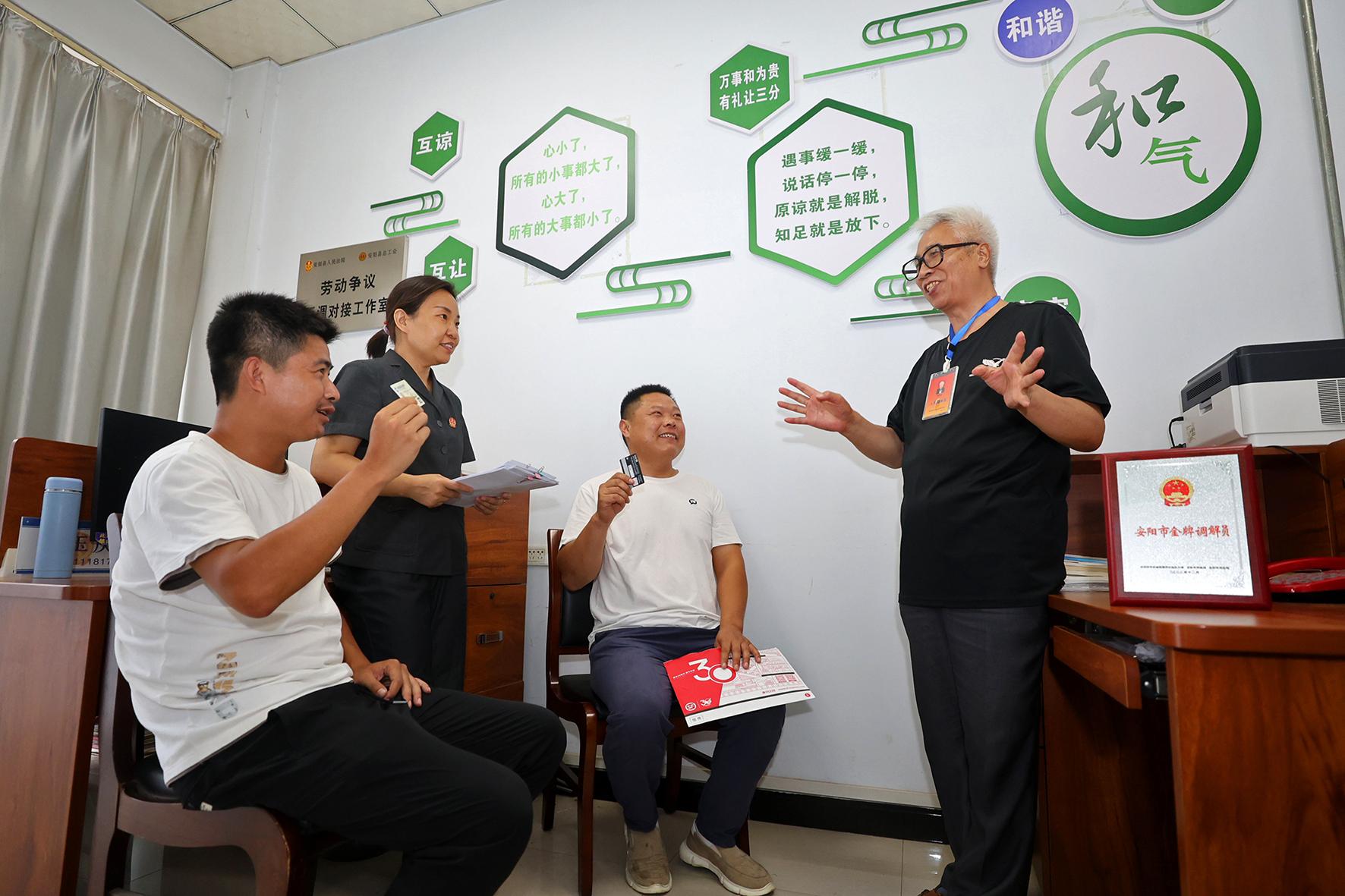 7月11日,河南省安陽縣人民法院訴訟服務(wù)中心人民調(diào)解員通過電話、微信等線上辦案模式,在訴前快速調(diào)解一起勞務(wù)合同糾紛案,兩名當事人領(lǐng)取工資款后喜笑顏開。