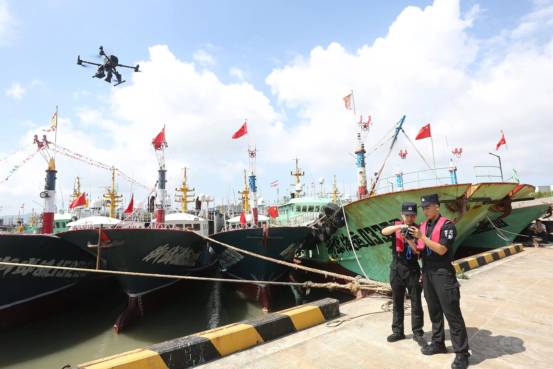 為積極應對今年第6號臺風“卡努”可能帶來的影響,7月31日,浙江省岱山縣公安局民警利用警用無人機對岱山縣域漁港進行空中巡查,加強漁港碼頭治安管控力度,對各類避風船只開展安全提示。