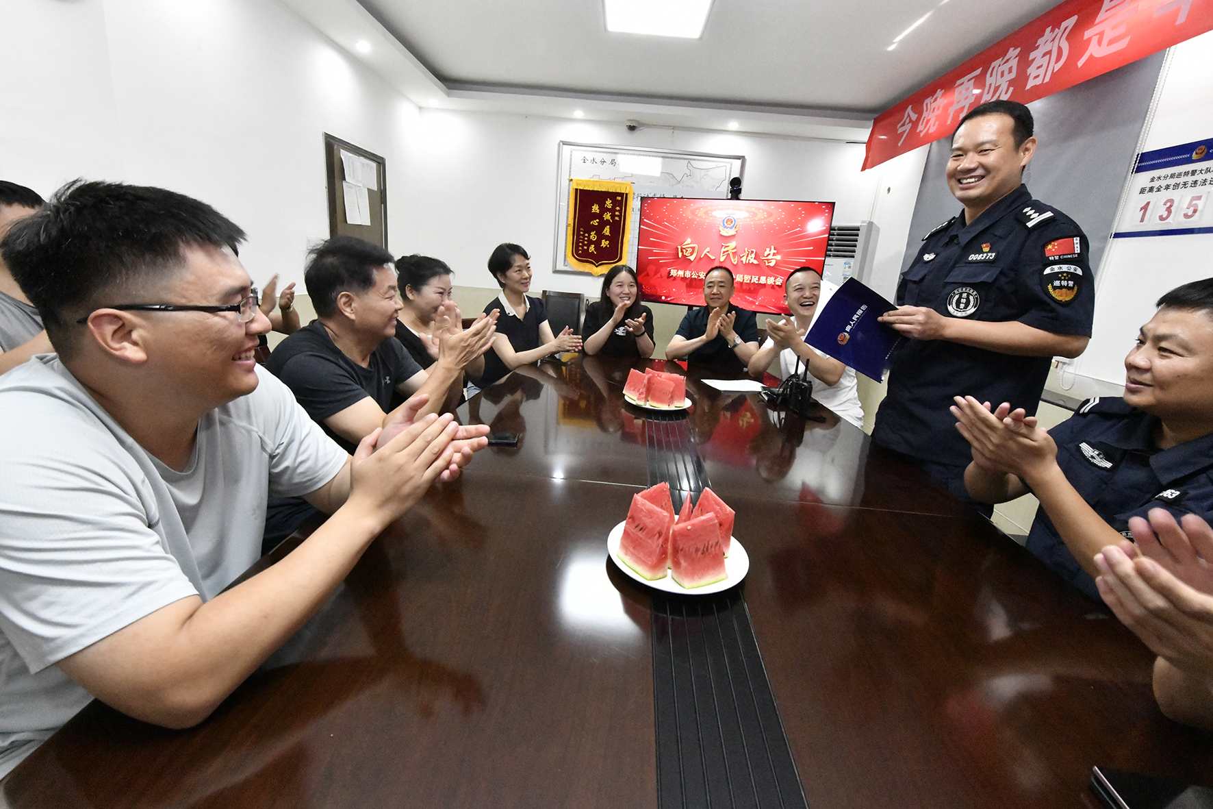 8月22日,河南省鄭州市公安局金水分局巡特警向轄區(qū)群眾代表開展“向人民報(bào)告”匯報(bào)工作活動。