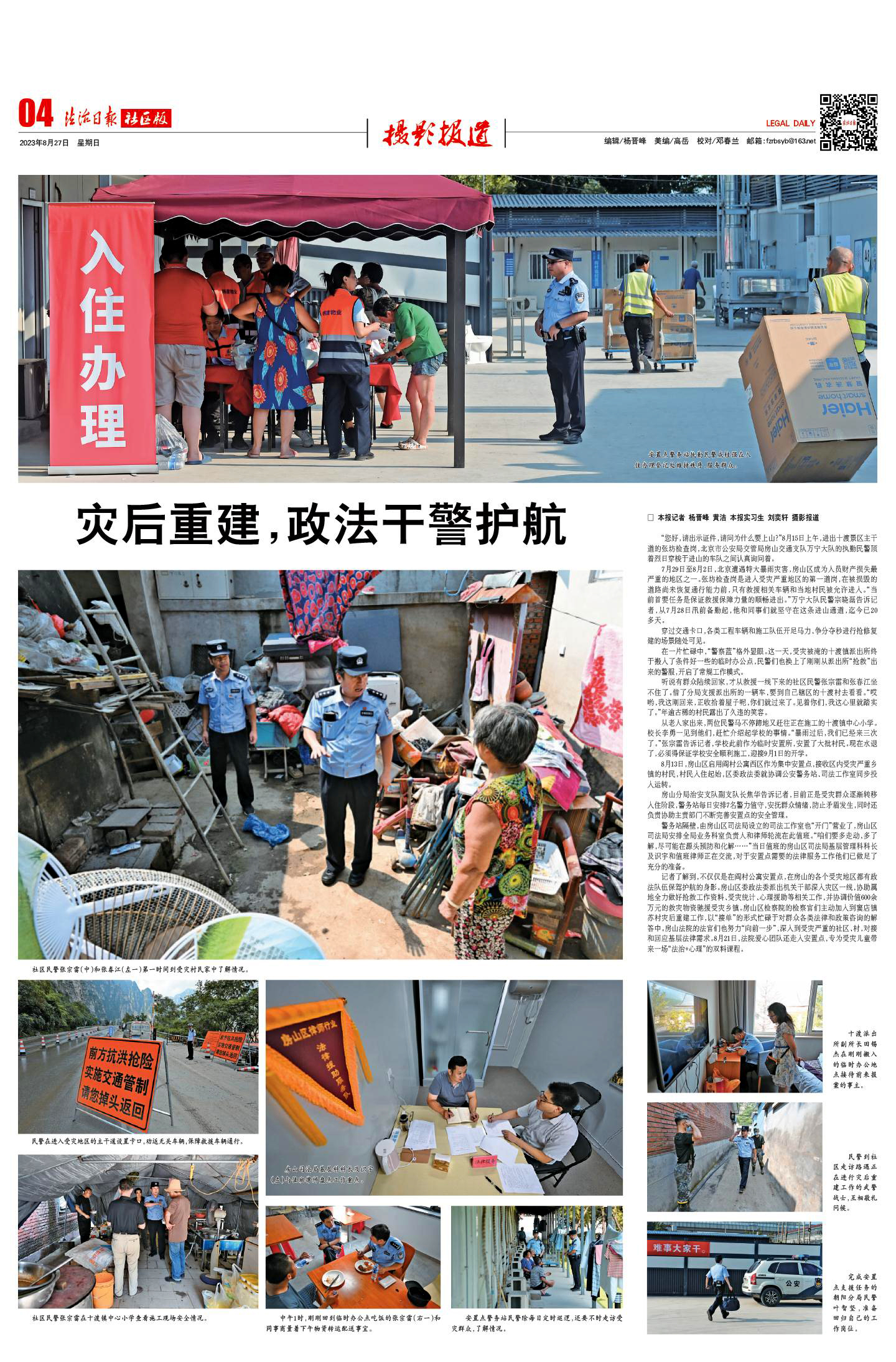 8月13日,房山區(qū)啟用閻村公寓西區(qū)作為集中安置點(diǎn),接收區(qū)內(nèi)受災(zāi)嚴(yán)重鄉(xiāng)鎮(zhèn)的村民,村民入住起始,區(qū)委政法委就協(xié)調(diào)公安警務(wù)站、司法工作室同步投入運(yùn)轉(zhuǎn)。