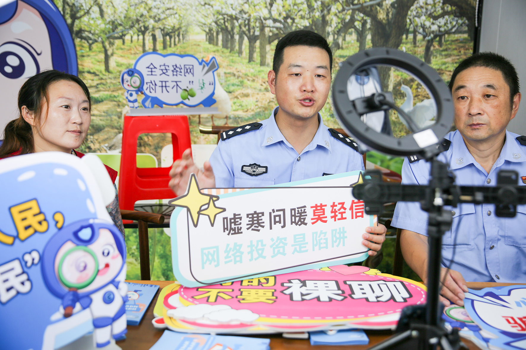 9月16日,江蘇省如皋市公安局東陳鎮(zhèn)派出所民警走進(jìn)徐灣社區(qū)直播間,向群眾普及網(wǎng)絡(luò)安全和防范電信詐騙知識。
