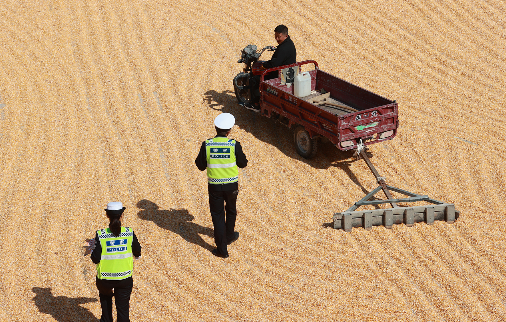 10月16日,陜西省大荔縣公安局交管大隊民警走進韋林鎮(zhèn)30多家機關(guān)、村部等為方便群眾“開院曬糧”的場地,重點對晾曬翻攪糧食的摩托車駕駛?cè)藛T進行勿忘戴頭盔和禁止酒后駕駛的宣傳,杜絕一切安全隱患。