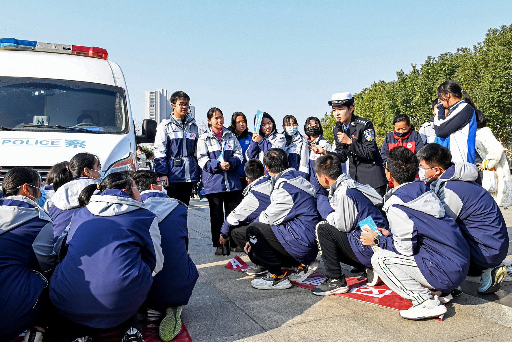 11月29日,安徽省當(dāng)涂縣公安局交管大隊(duì)民警走進(jìn)校園開(kāi)展“122交通安全日”宣傳活動(dòng)。