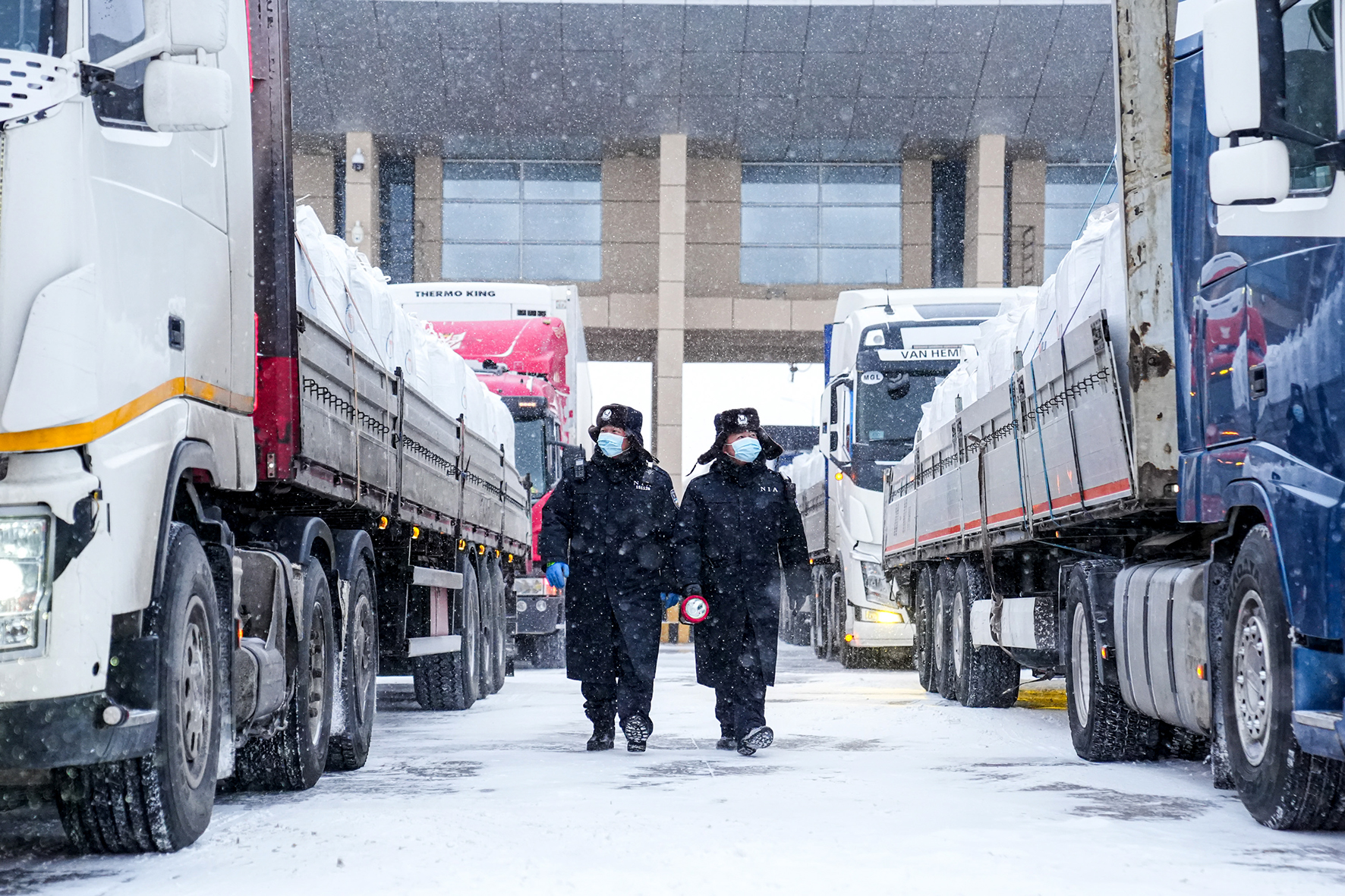 12月14日,內(nèi)蒙古自治區(qū)二連浩特市迎來(lái)強(qiáng)降雪天氣。駐守在祖國(guó)正北方的內(nèi)蒙古出入境邊防檢查總站二連出入境邊防檢查站科學(xué)合理調(diào)配執(zhí)勤警力,開(kāi)啟全部查驗(yàn)通道,加快車輛檢查驗(yàn)放速度,全力確??诎锻P(guān)安全穩(wěn)定順暢。