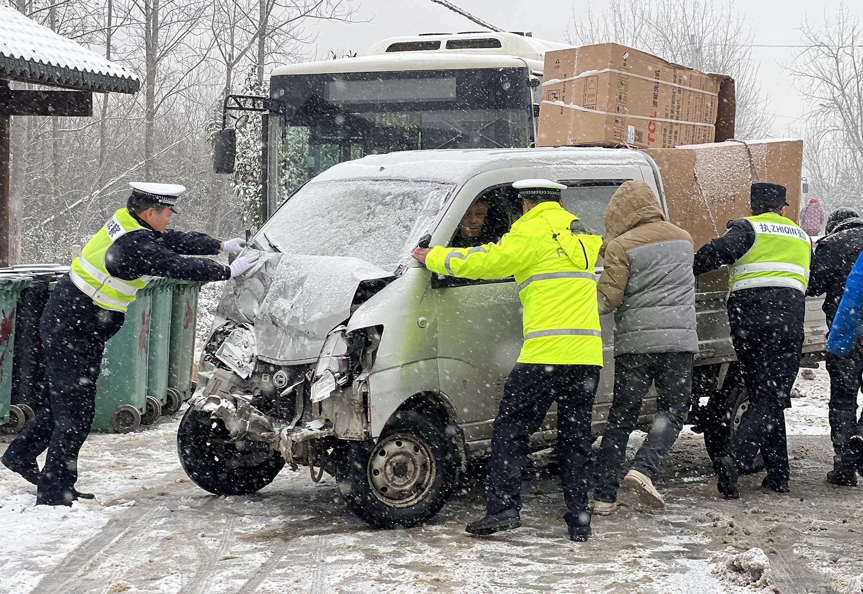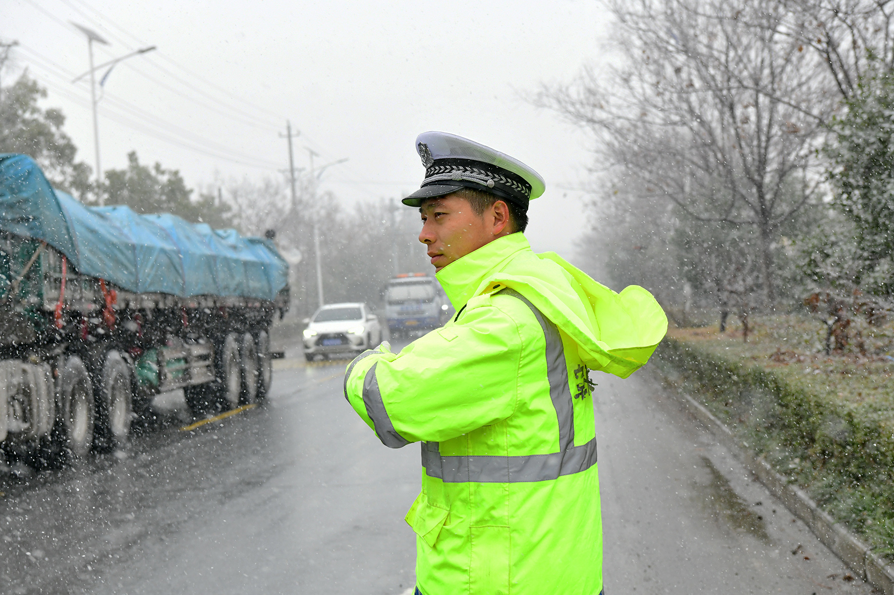 2月18日,安徽省舒城縣公安局交管大隊以雪為令,全員上崗,在轄區(qū)主要路段部署警力,及時處理事故車輛,確保境內(nèi)主干道暢通。