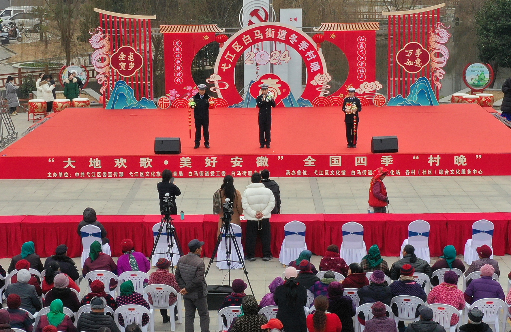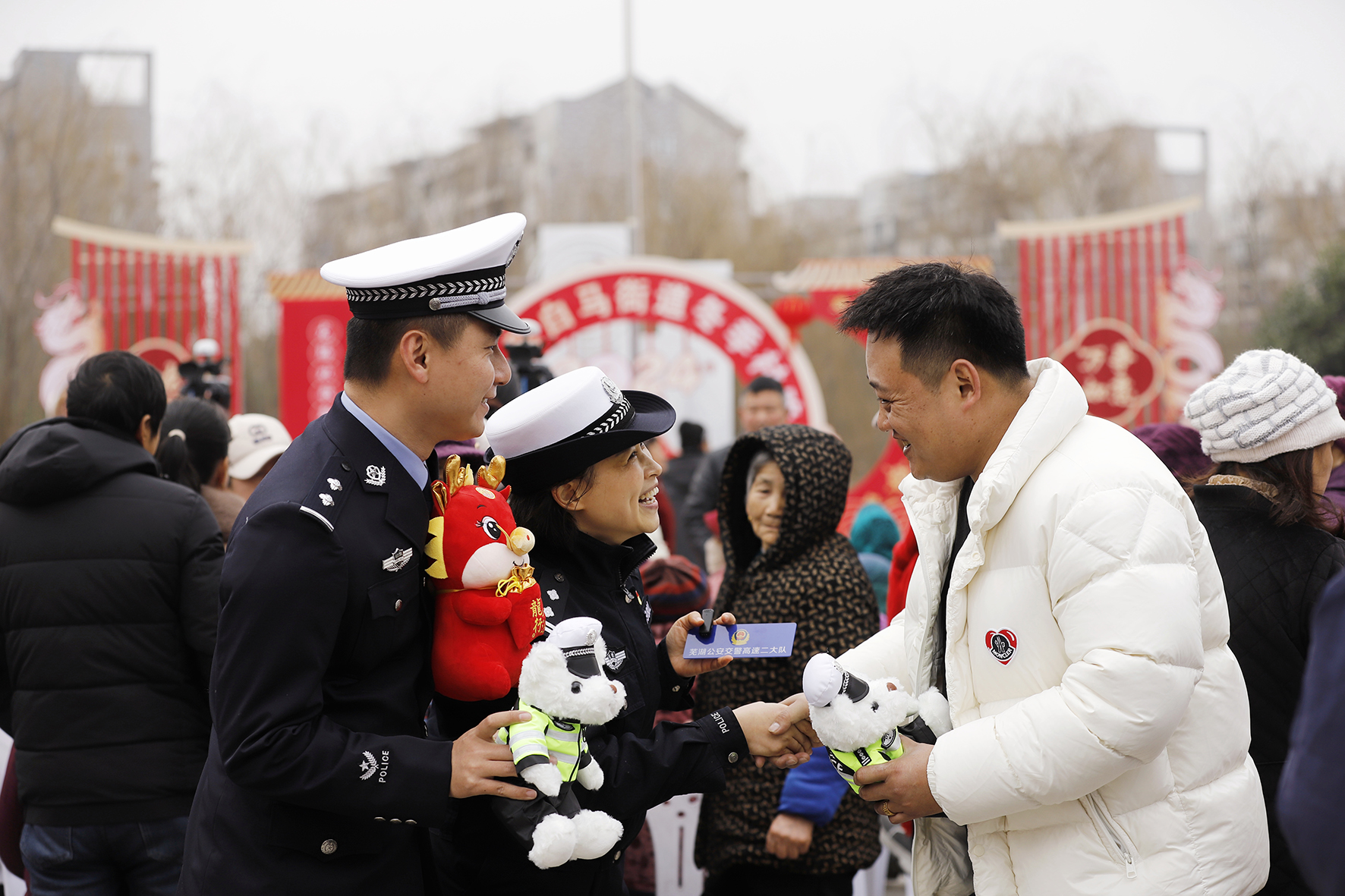 1月17日,安徽省蕪湖市公安局交警支隊(duì)高速二大隊(duì)民警走進(jìn)弋江區(qū)白馬街道冬季“村晚”現(xiàn)場,通過“交通知識(shí)你來答‘熊熊’‘火火’過大年”活動(dòng),向廣大群眾宣傳“一盔一帶”、高速公路安全行車等交通安全知識(shí),共迎“春運(yùn)”,共祝平安。