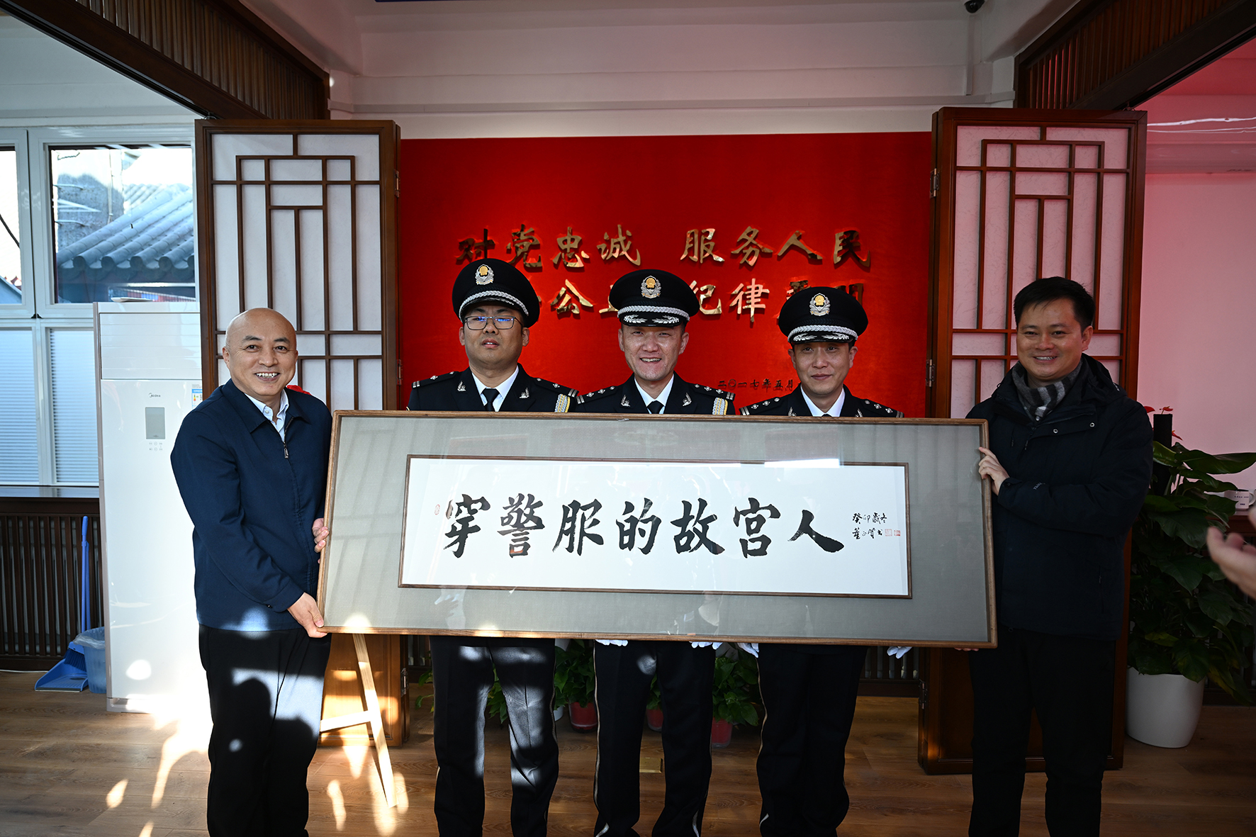 1月10日是中國人民警察節(jié),文化和旅游部黨組成員、故宮博物院院長王旭東向故宮派出所贈予“穿警服的故宮人”牌匾,希望民警們繼續(xù)擔(dān)負(fù)起文物安全守護(hù)者、文化尊嚴(yán)捍衛(wèi)者、為民服務(wù)踐行者的時(shí)代使命。