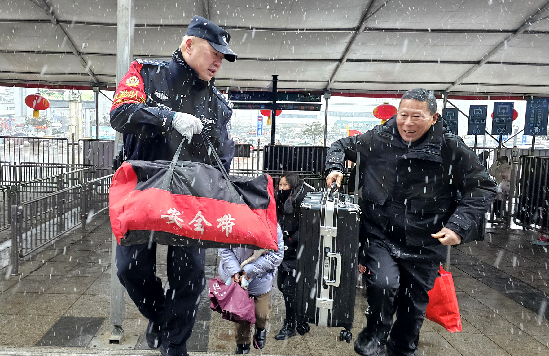 2月3日,江蘇徐州普降中雪。為確保旅客安全出行,徐州鐵路公安處迅速啟動(dòng)預(yù)案,抽調(diào)民警增援徐州站、徐州東站等重點(diǎn)客運(yùn)車站執(zhí)勤警力,加強(qiáng)巡邏檢查和秩序維護(hù)。