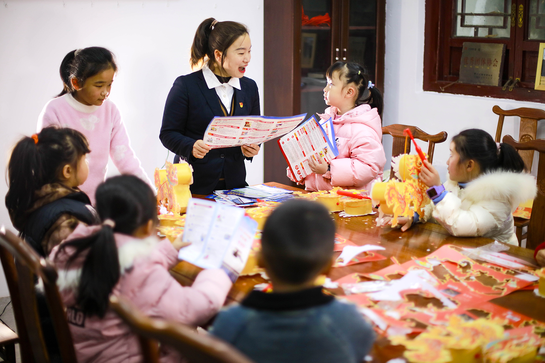 2月22日,貴州省黔西市司法局工作人員走進文峰街道新時代文明實踐站,和孩子們一起做迎接元宵花燈,講解民法典、交通安全、校園欺凌等知識。
