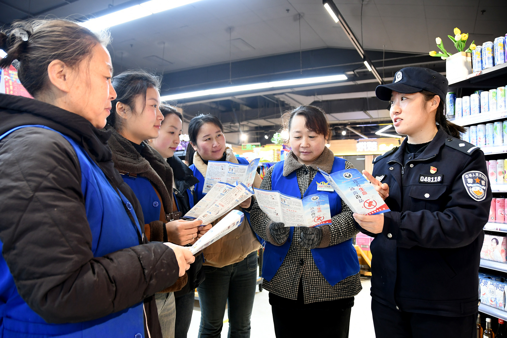 2月27日,河南省浚縣公安局黎陽組織民警深入轄區(qū)商場、超市等場所開展禁毒宣傳活動。