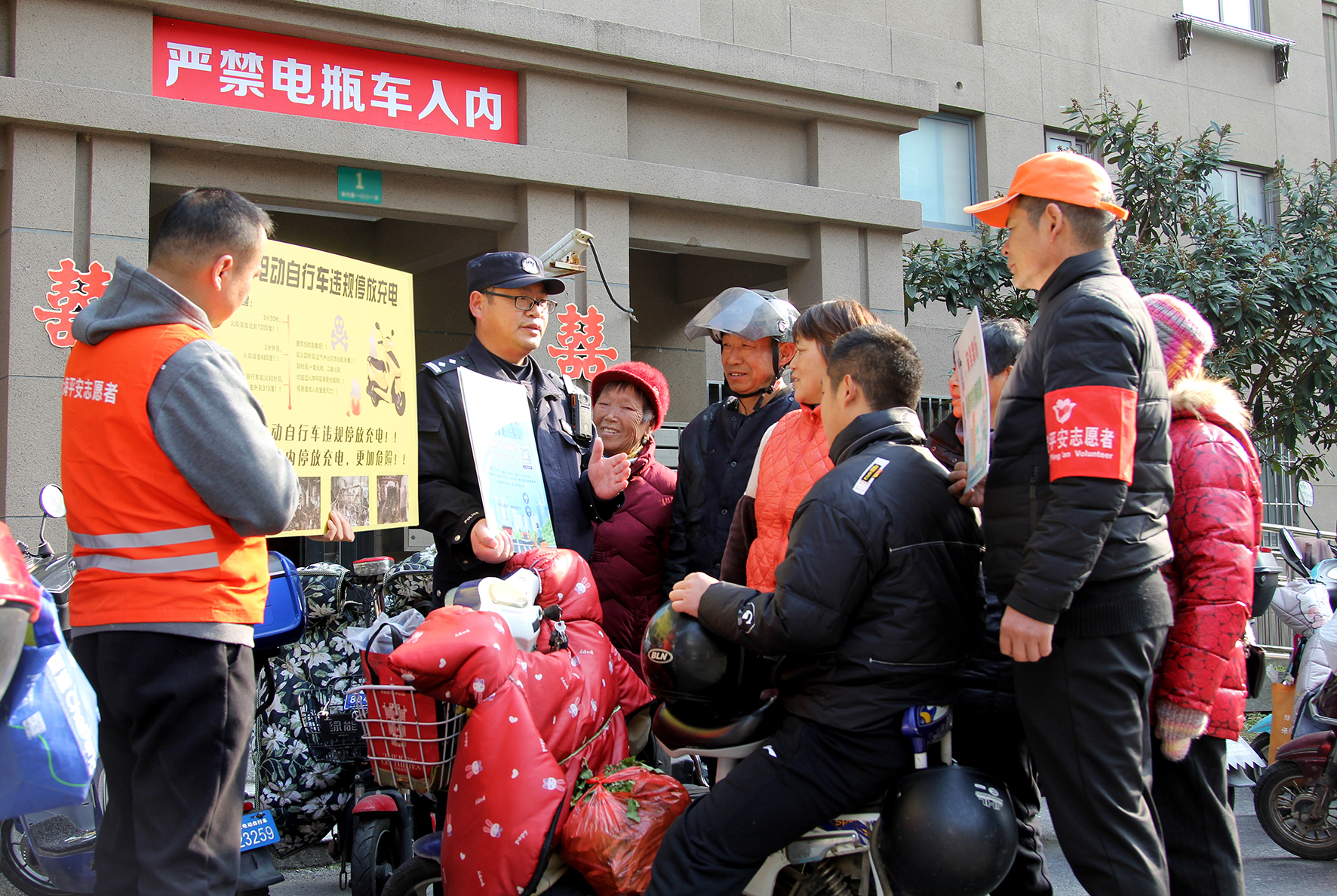 連日來,上海市公安局嘉定分局組織社區(qū)民警會(huì)同居(村)委、物業(yè)和平安志愿者等各社會(huì)安防力量,全面加強(qiáng)高層住宅小區(qū)、沿街商鋪等電動(dòng)自行車入樓停放、充電(飛線)和非法改裝銷售等行為的巡查群防、整治查處和安全知識(shí)宣傳。