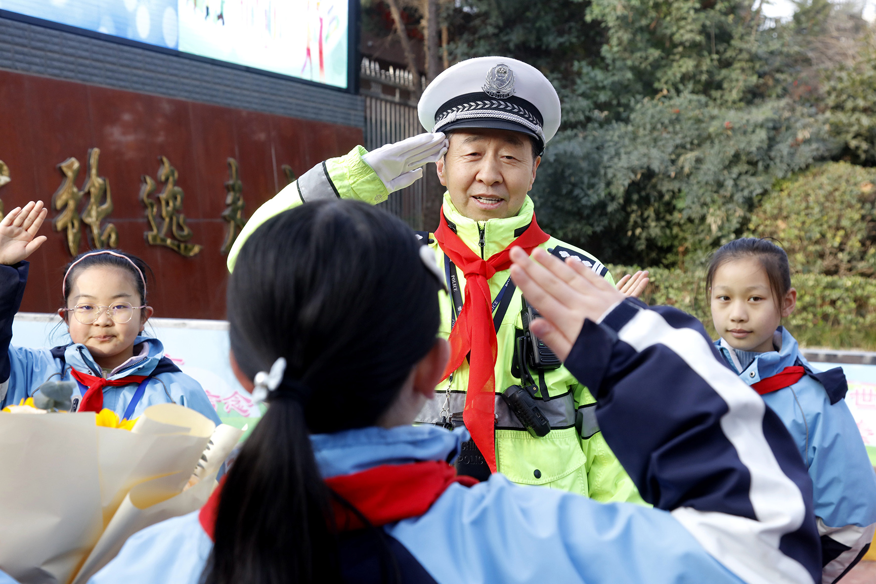 3月6日,是陜西省渭南市公安局交警支隊(duì)臨渭大隊(duì)60歲老民警李太平退休前的最后一班護(hù)學(xué)崗。從警23年的他曾經(jīng)是一名軍人,轉(zhuǎn)業(yè)到臨渭交警大隊(duì)后,從事交通管理工作最多的就是與學(xué)校的孩子們打交道,每周他都會(huì)走上課堂給孩子們宣傳交通安全知識(shí),每天早上7點(diǎn)會(huì)準(zhǔn)時(shí)站到學(xué)校門(mén)前,護(hù)送學(xué)生安全上學(xué)。