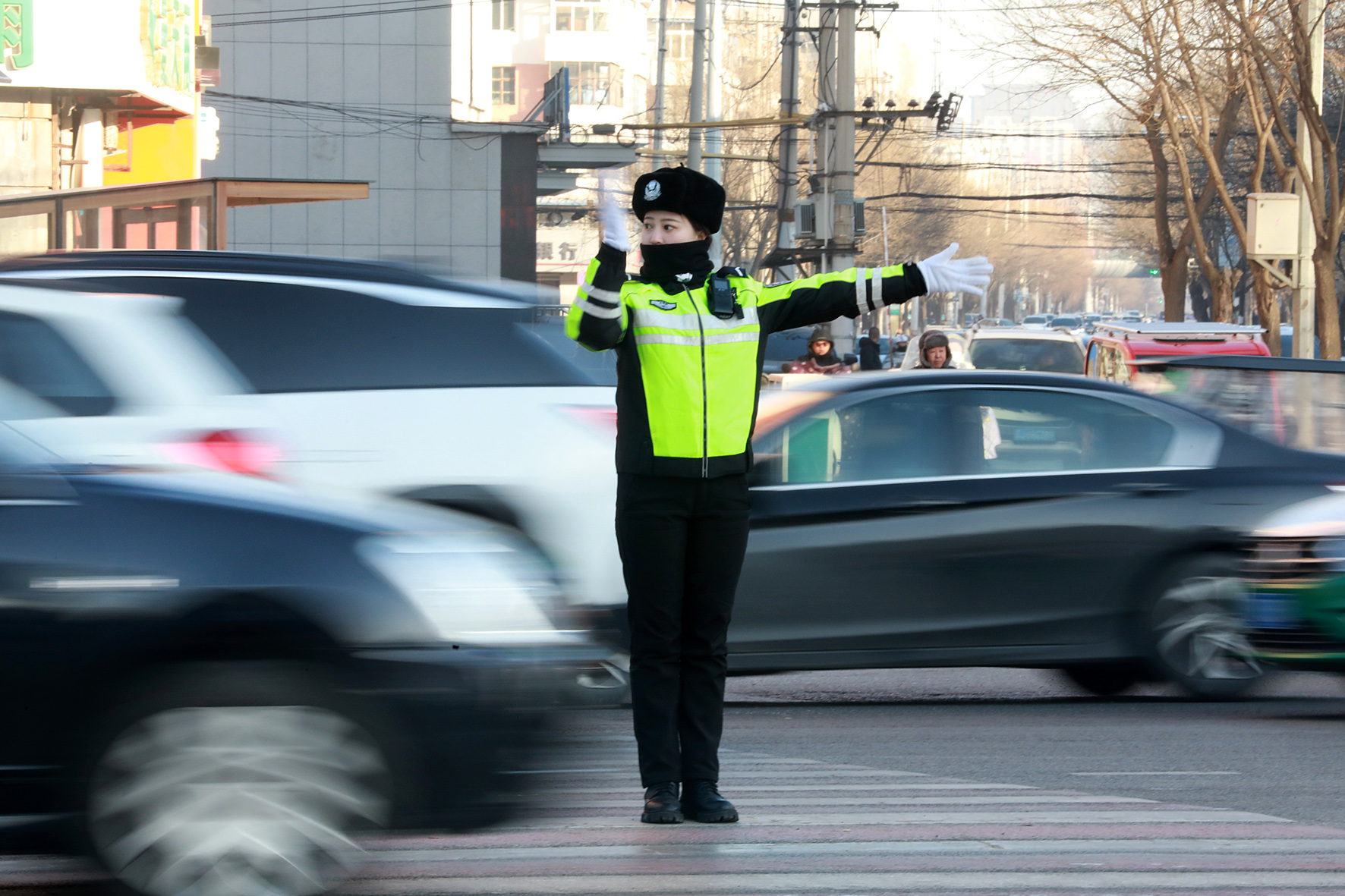 3月7日,遼寧省阜新市公安局交警支隊(duì)女民警堅(jiān)守崗位,迎接“三八”國際婦女節(jié)。