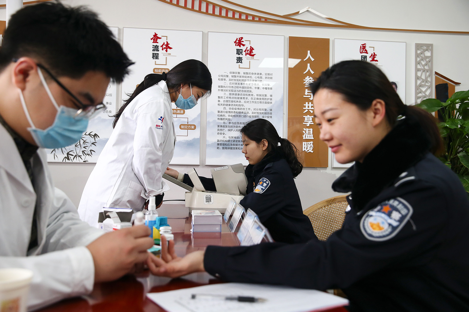 3月7日,山東省濟(jì)南市公安局市中區(qū)分局組織“義診服務(wù)”活動,邀請醫(yī)務(wù)人員走進(jìn)警營為女民警提供查體和保健服務(wù)。