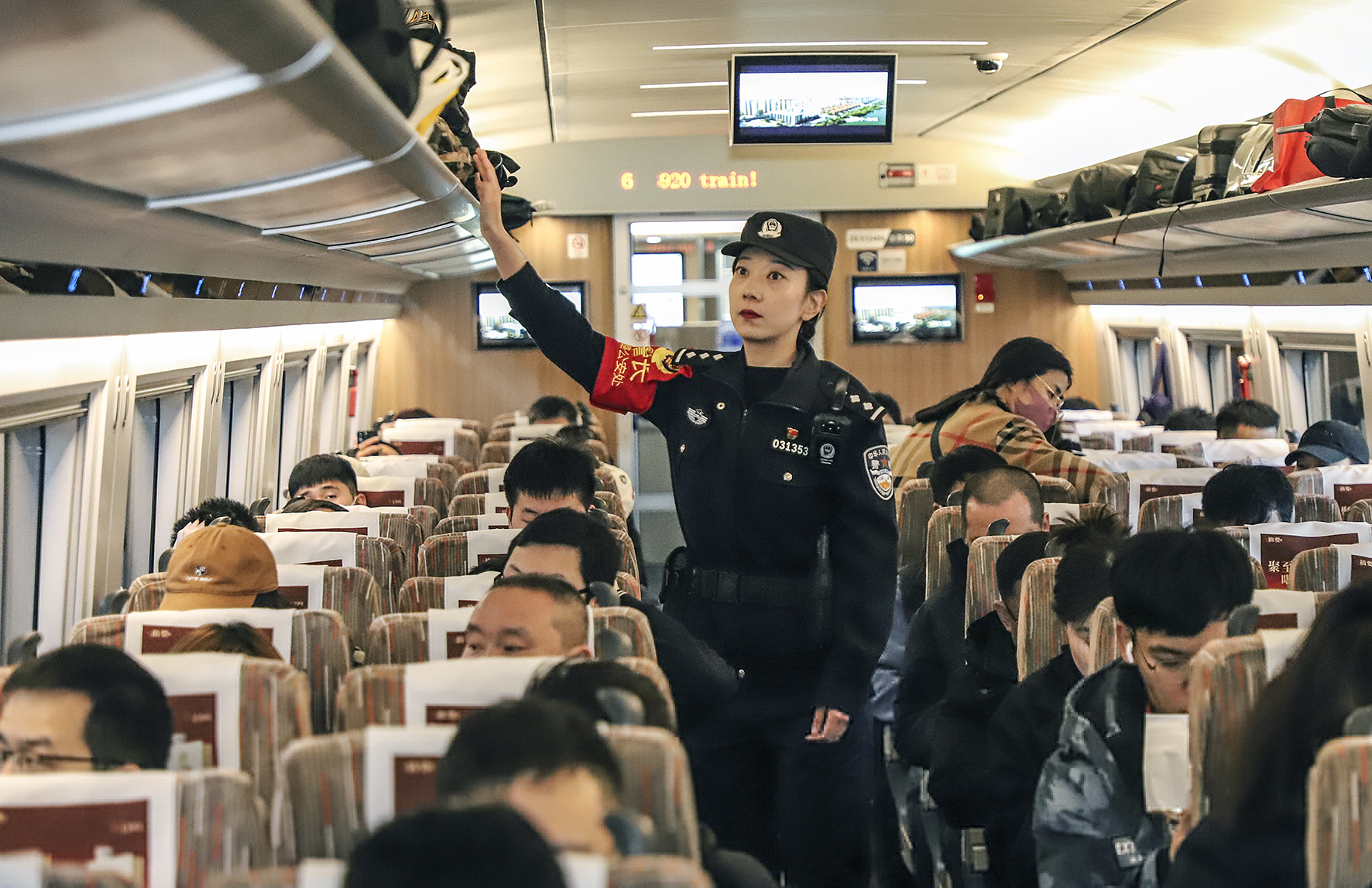 3月7日,沈陽鐵路公安局沈陽公安處乘警支隊(duì)的女民警在自己的工作崗位上迎接“三八”國際婦女節(jié)的到來。