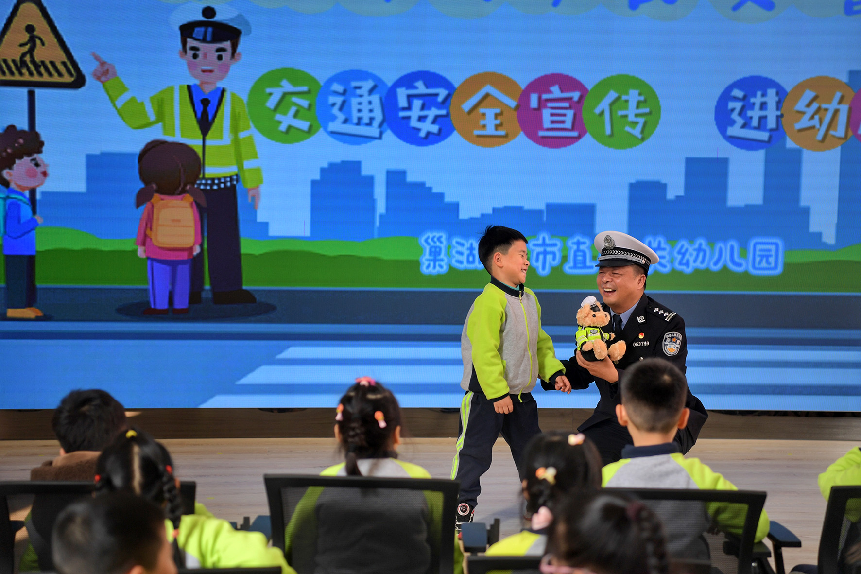 3月15日,安徽省巢湖市公安局交警大隊民警走進市直機關(guān)幼兒園,為小朋友們講解道路交通安全知識。