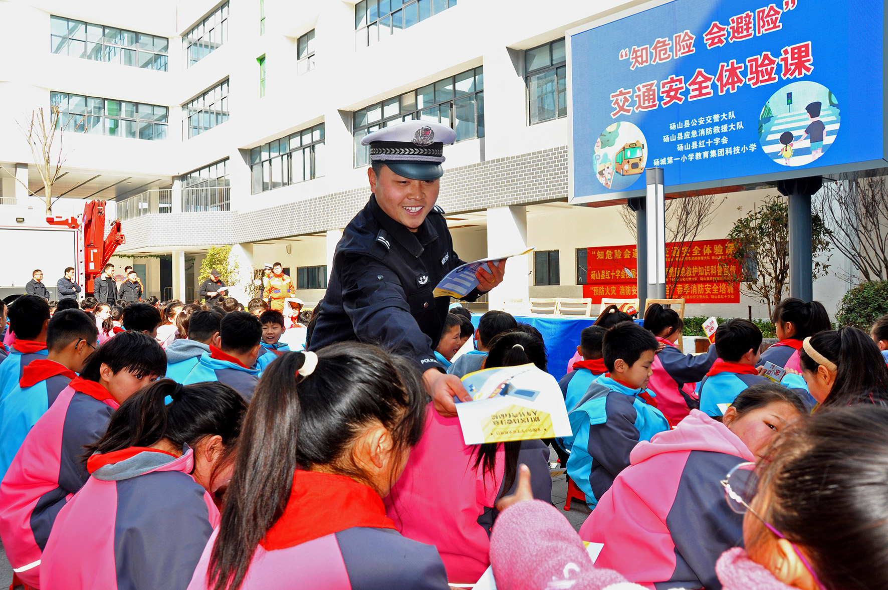 3月15日,安徽省碭山縣公安局交警大隊民警輔警走進轄區(qū)科技小學(xué),開展交通安全宣傳進校園活動。