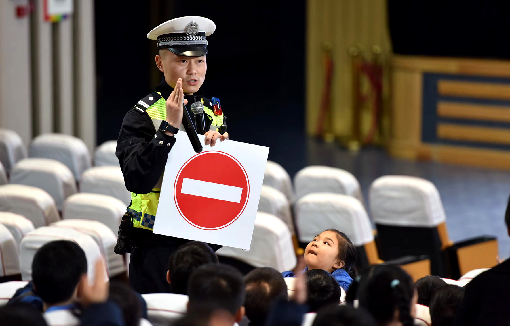 3月15日,四川省綿陽市公安局交警支隊(duì)直屬二大隊(duì)民警走進(jìn)轄區(qū)小學(xué)開展交通安全主題宣傳活動(dòng)。民警帶領(lǐng)同學(xué)們通過觀看視頻了解交通法規(guī)、認(rèn)識(shí)交通標(biāo)志,在“一問一答”中增強(qiáng)小學(xué)生的交通安全意識(shí)。