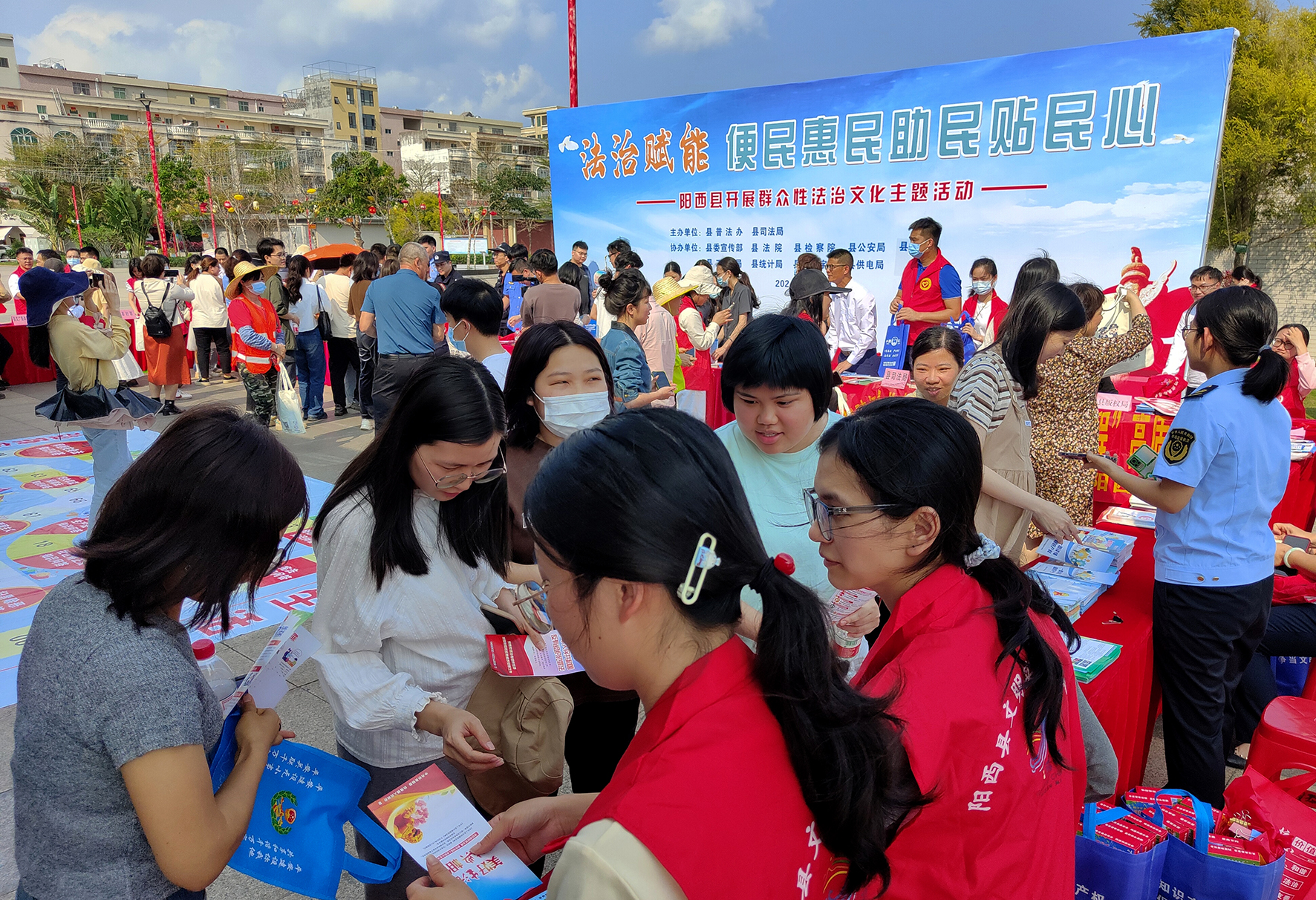 3月25日,由廣東省陽西縣普法辦、陽西縣司法局主辦,縣委宣傳部、縣法院、縣檢察院、縣公安局、縣工信局、縣統(tǒng)計局、縣紅十字會、縣供電局、縣僑聯(lián)等協(xié)辦,以“便民惠民助民貼民心”為主題的群眾性法治文化活動在陽西法治廣場法律驛站舉行,民法典宣講、法律咨詢、法律知識有獎問答等活動受到群眾歡迎,場面“火爆”。