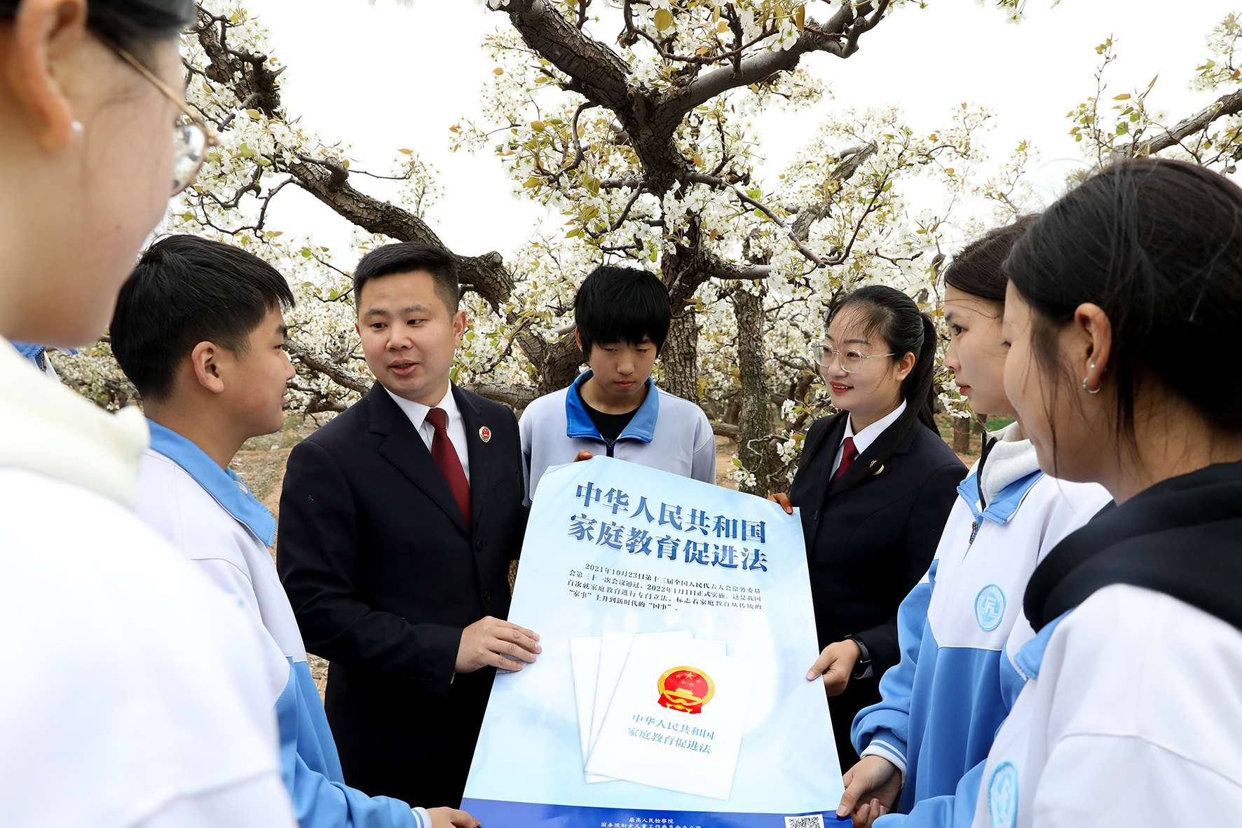 4月3日,河北省魏縣人民檢察院“小葵花”法治團(tuán)隊(duì)開(kāi)展 “‘家’倍守護(hù)”之走進(jìn)梨園活動(dòng)。