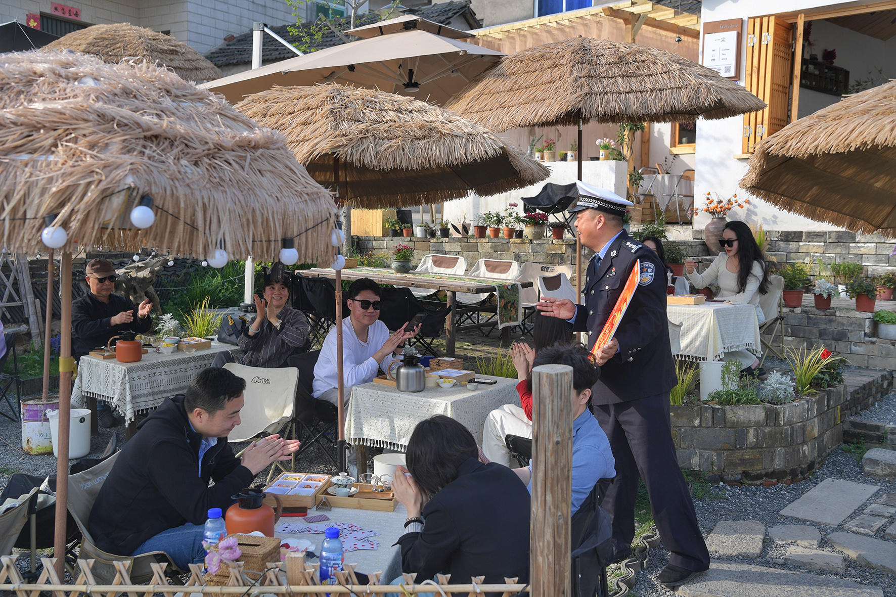 4月9日,安徽省巢湖市公安局交警大隊民警走進(jìn)中廟鎮(zhèn)王咀村網(wǎng)紅打卡地,為游客講解道路交通安全知識。