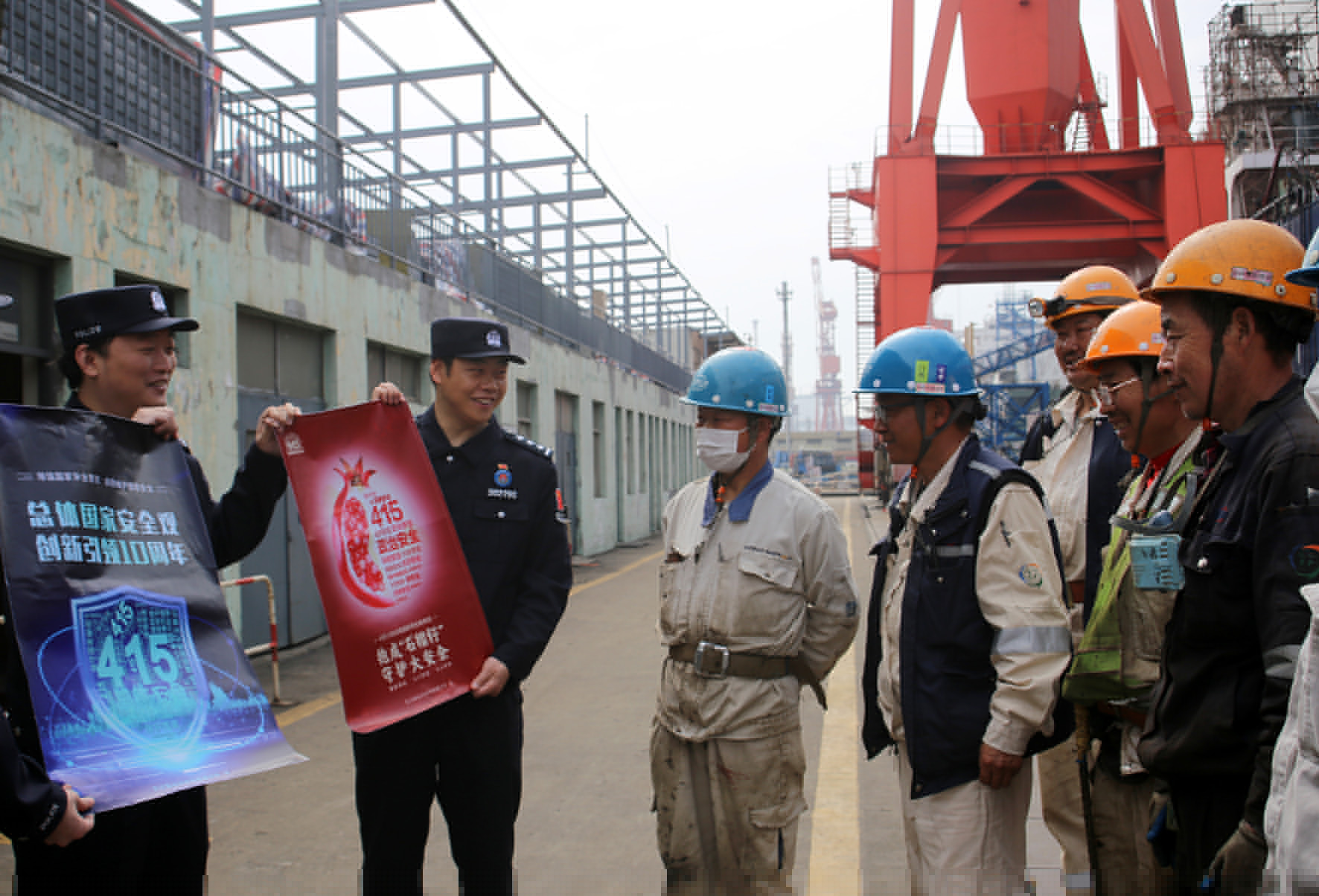 4月11日,長江航運公安局南通分局南通派出所聯(lián)合南通邊檢執(zhí)勤二隊走進轄區(qū)企業(yè),宣講國家安全法等法律法規(guī)。