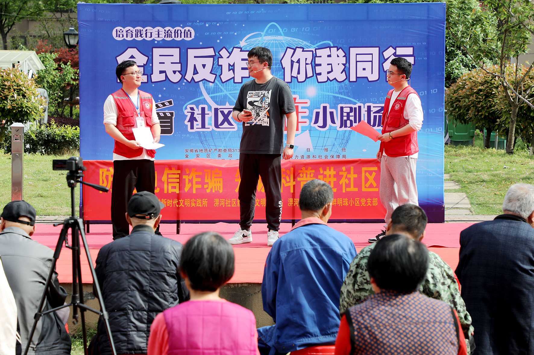 為進(jìn)一步提升居民識騙防騙意識,創(chuàng)新開展防范電信網(wǎng)絡(luò)詐騙宣傳,4月15日,由安徽省六安市金安區(qū)東市街道淠河社區(qū)主辦開展的“社區(qū)反詐小劇場”開演,現(xiàn)場通過民警面對面以案說法、社區(qū)工作人員自編自導(dǎo)自演反電詐短劇、互動有獎競答等形式,讓群眾在寓教于樂的氛圍中學(xué)習(xí)反詐知識,增強(qiáng)反詐技能,筑牢反詐“防護(hù)網(wǎng)”。