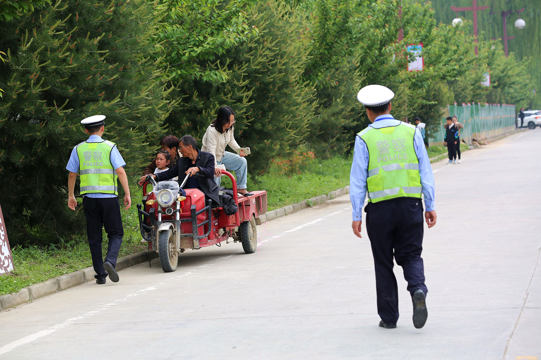5月4日,陜西省渭南市潼關(guān)縣公安局交警大隊(duì)民警嚴(yán)查嚴(yán)控農(nóng)用三輪車非法載人交通違法行為。