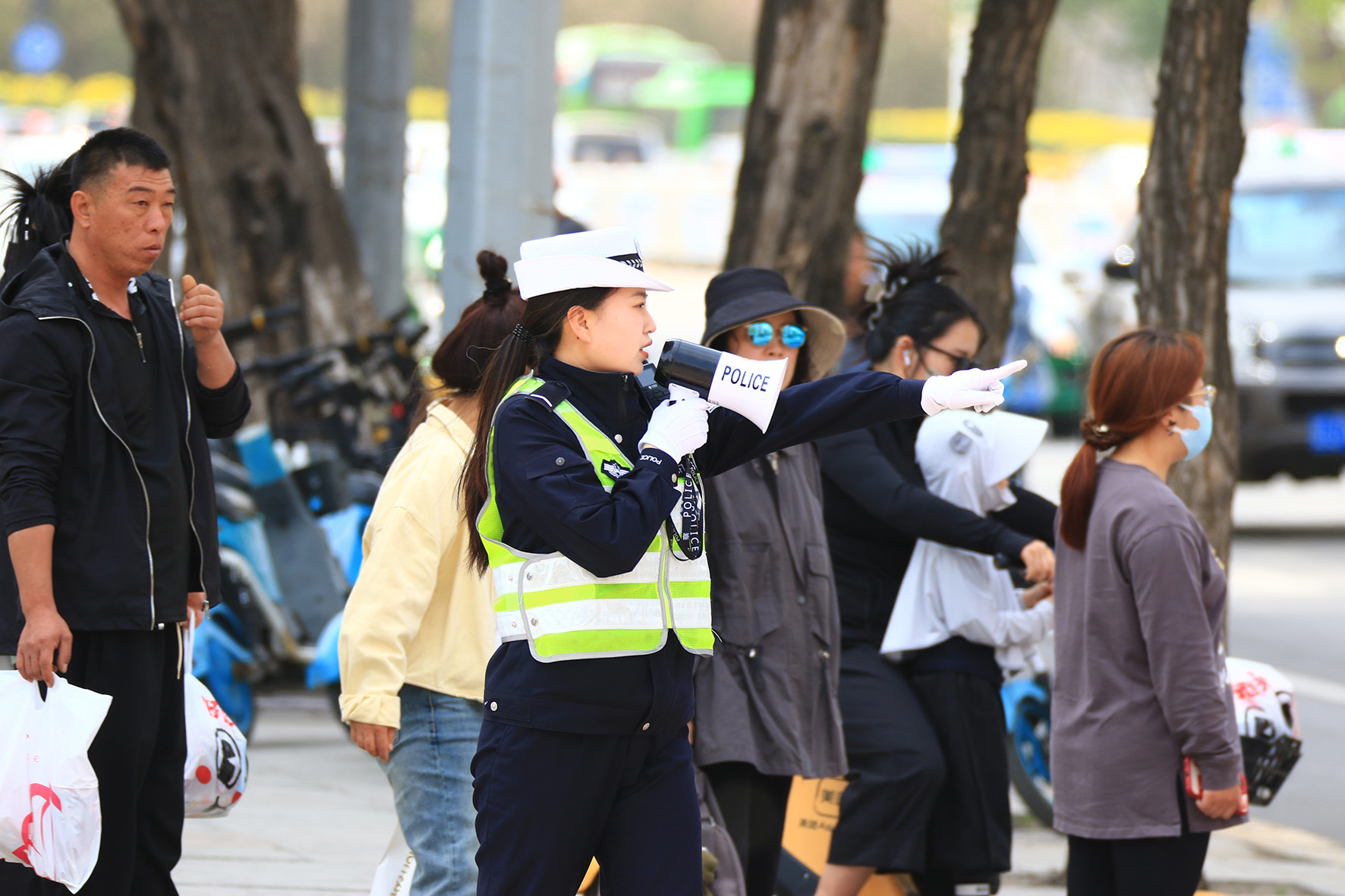 5月4日,山東省濟(jì)南市公安局交警支隊(duì)市中區(qū)大隊(duì)女子中隊(duì)青年女警堅(jiān)守崗位,維護(hù)交通秩序,開展街面巡邏,確保群眾平安出行。