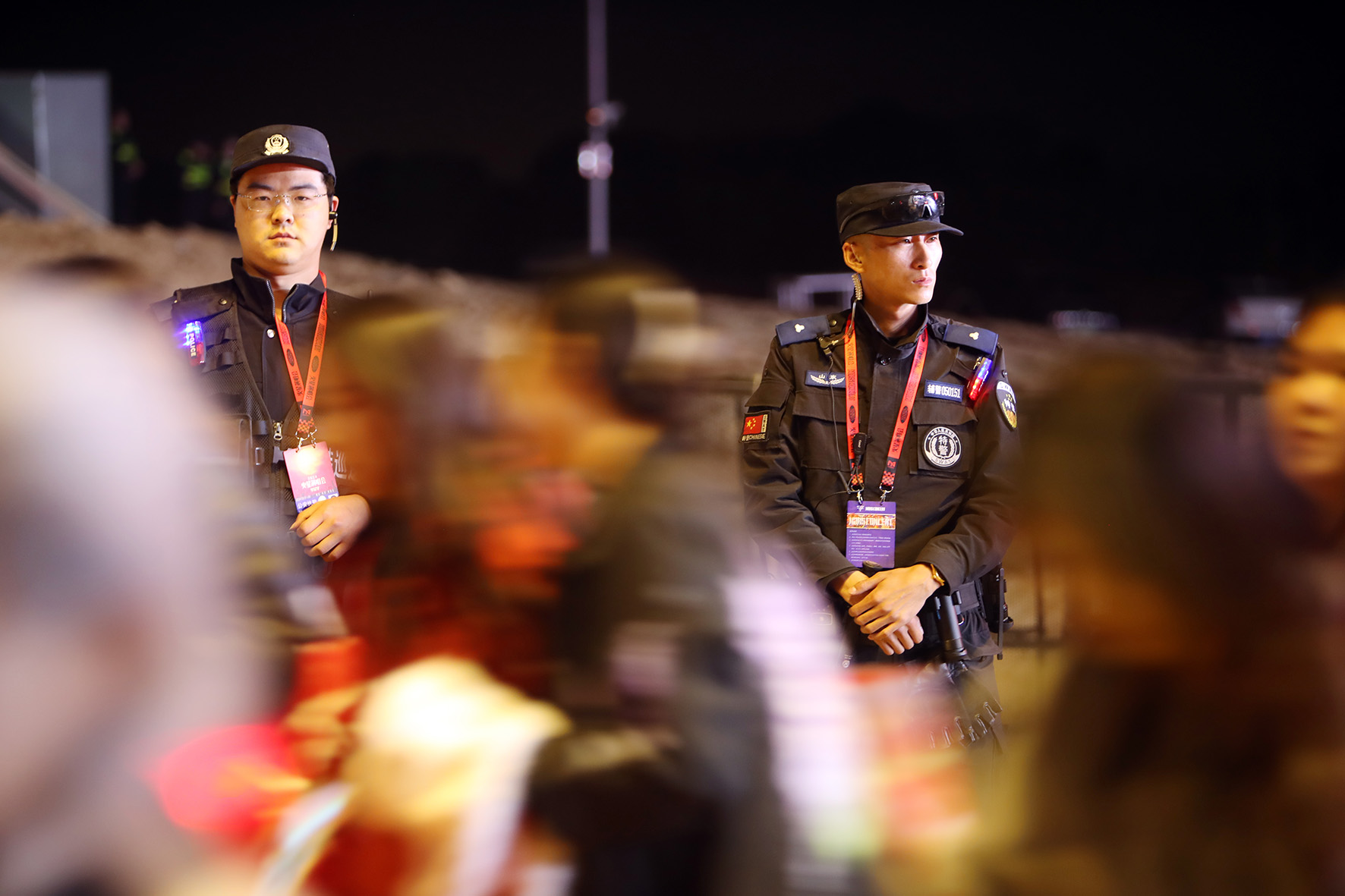 5月1日,山東省煙臺市公安局牟平分局輔警在里蹦島演唱會現(xiàn)場執(zhí)勤。