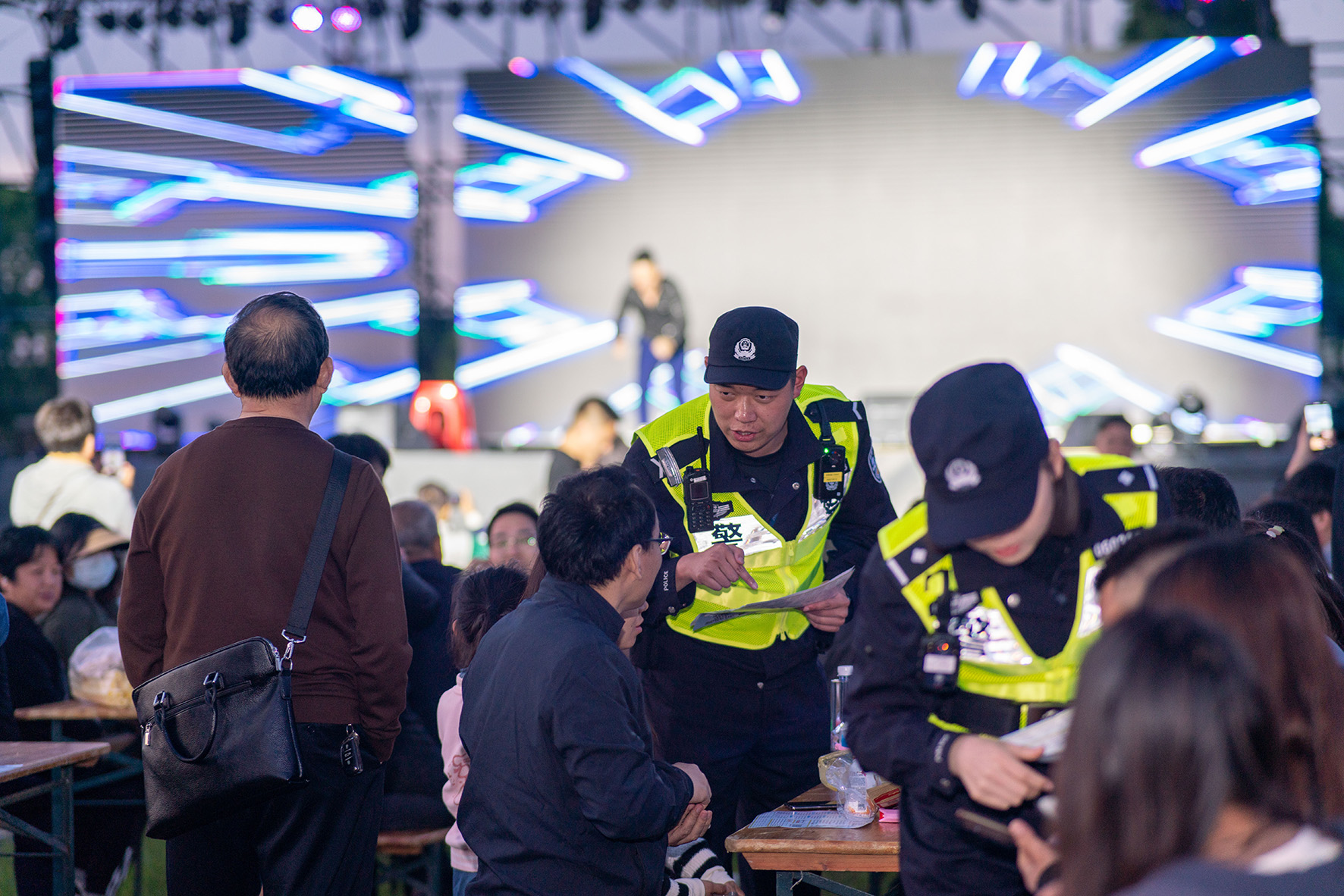 5月2日,上海市公安局崇明分局豎新派出所民警在電音節(jié)現(xiàn)場開展巡邏守護(hù)。