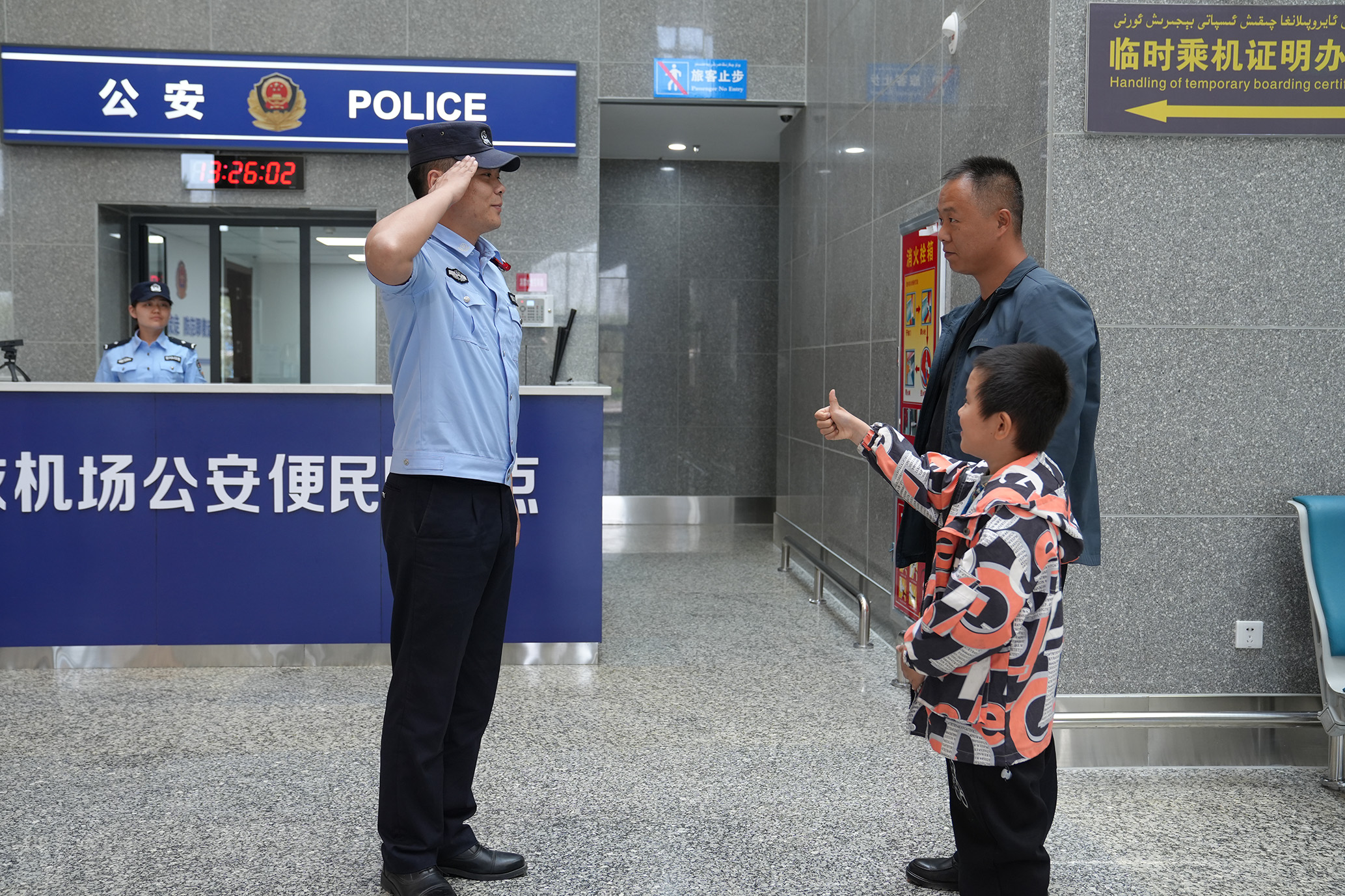 5月3日,新疆克拉瑪依市公安局機(jī)場分局民警堅(jiān)守一線,全力以赴為廣大旅客出行創(chuàng)造安全有序的治安環(huán)境。